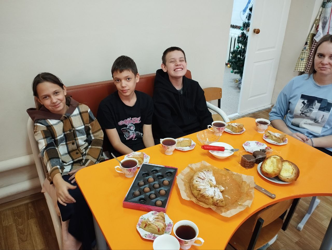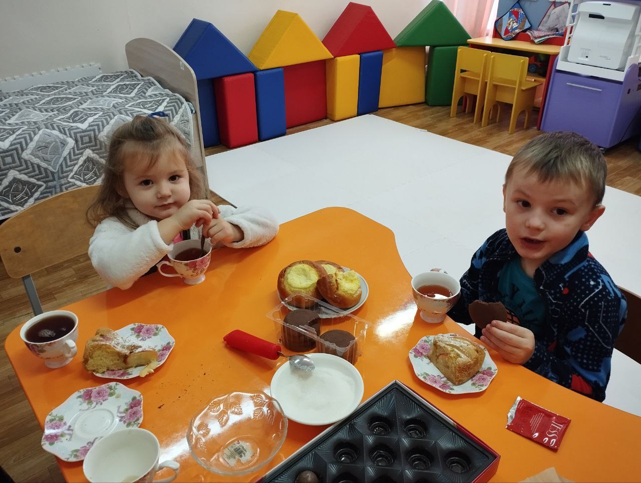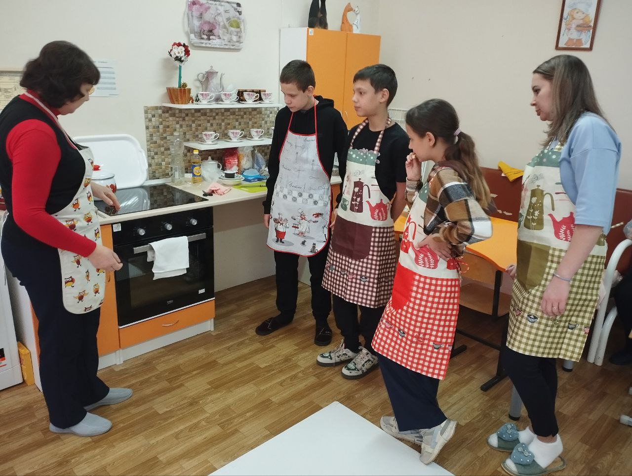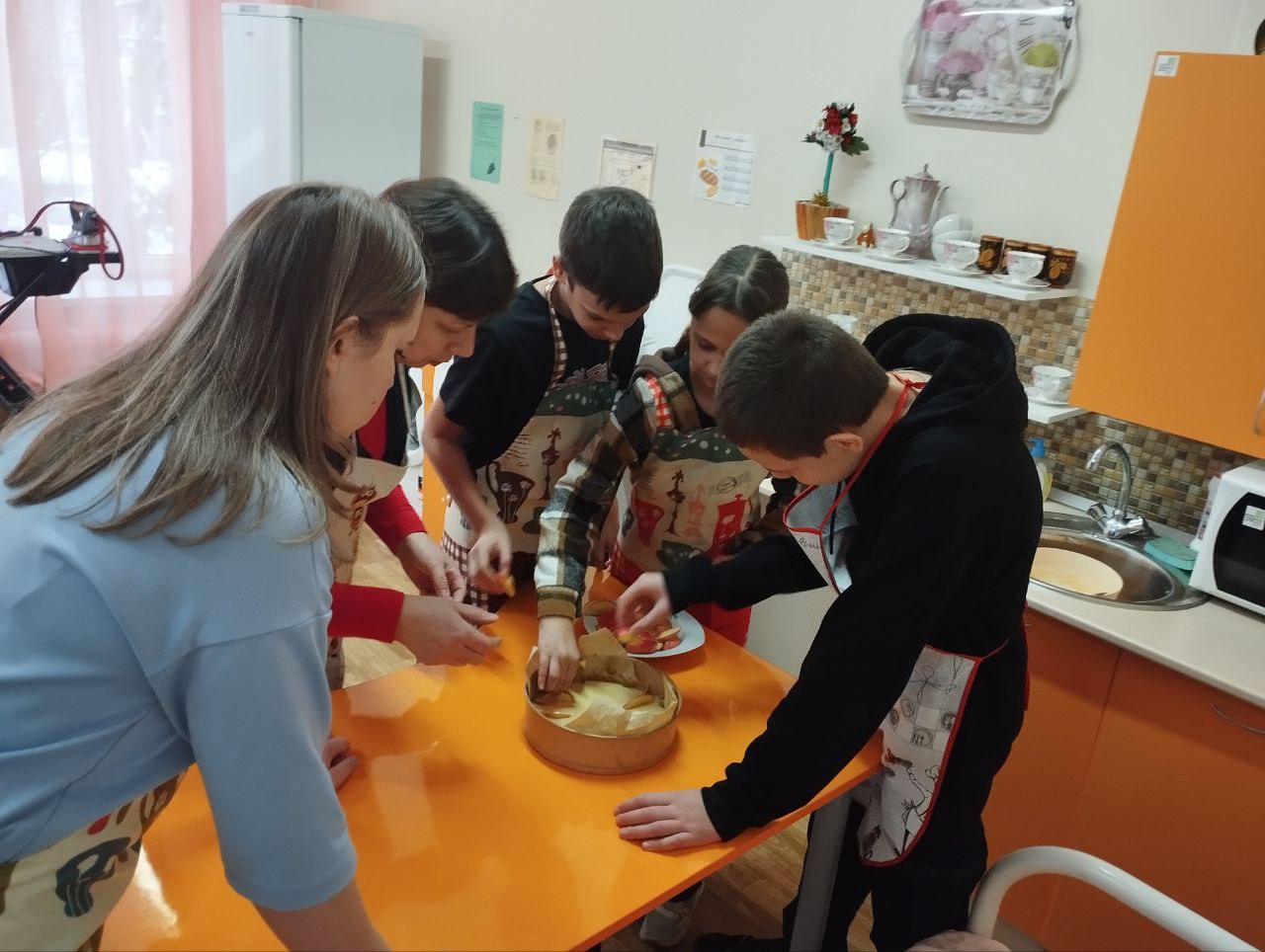 В отделении дневного пребывания прошла встреча клуба «Калейдоскоп». Дети совместно с родителями и социальным педагогом учились печь яблочный пирог «Шарлотка». В начале занятия педагог провела инструктаж по технике безопасности при работе на кухне и обращении с электрической плитой и духовкой. Дети сами смешивали ингредиенты, замешивали тесто и украшали пирог яблоками, а потом вместе наводили порядок на кухне, мыли посуду и убирали со стола. Пирог получился очень вкусный и ароматный! Юные повара угощали родителей, наливали им чай и угощали конфетами и ватрушками, а еще после процедур к ним пришли в гости на чаепитие наши малыши.
