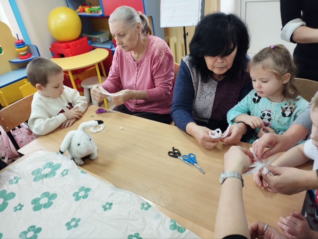 Для ребят и их родителей был подготовлен занимательный мастер - класс по изготовлению новогодней игрушки. Взрослые вместе с детьми с интересом выполняли задания педагога и создавали своими руками красивые снежинки-игрушки из синельной пушистой белой проволоки. После мастер - класса все вместе пили чай и поздравляли друг друга с наступающим новым годом, делились добрыми пожеланиями и впечатлениями о нашем Центре. В конце встречи дети получили памятные подарки.