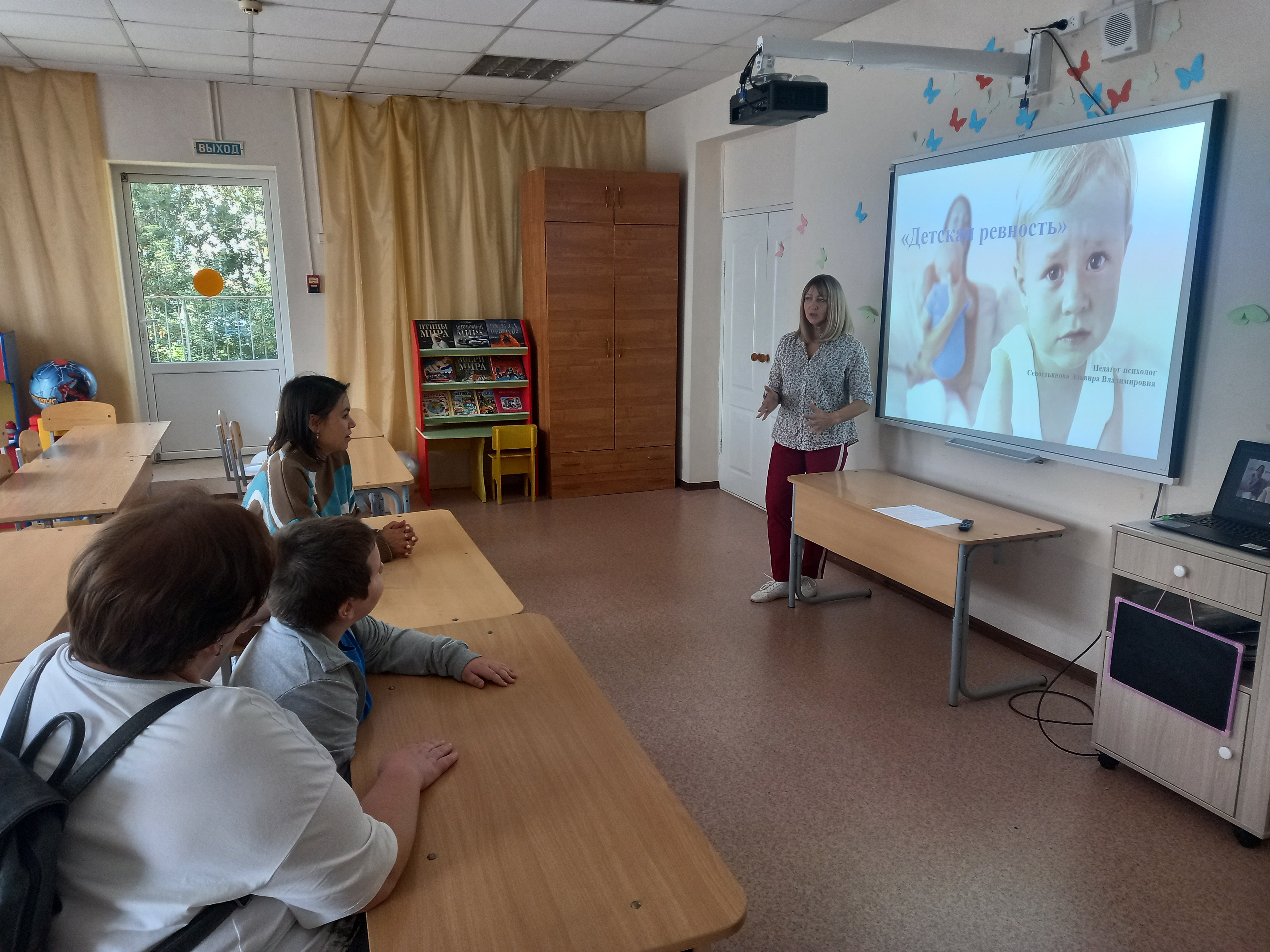 Почему дети ревнуют к младшим братьям и сестрам? Как помочь старшему ребенку справится с ревностью? Как бороться с детской ревностью? На встрече Эльвира Владимировна познакомила родителей с причинами появления детской ревности, ее проявлениями и возможными последствиями; помогла разобраться с распространенными ошибками в воспитании детей. Также совместными усилиями были разработаны рекомендации, которые помогут минимизировать проявления ревности у детей.