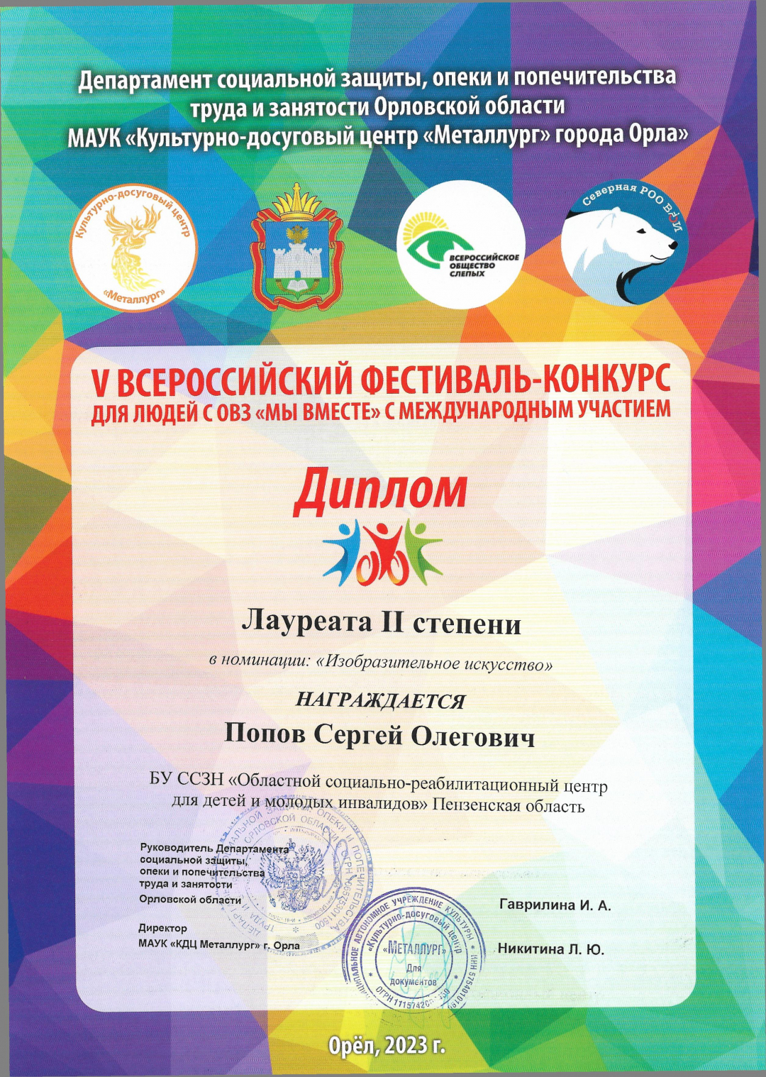 Итоги V Всероссийского фестиваля - конкурса для людей с ОВЗ "Мы вместе"
