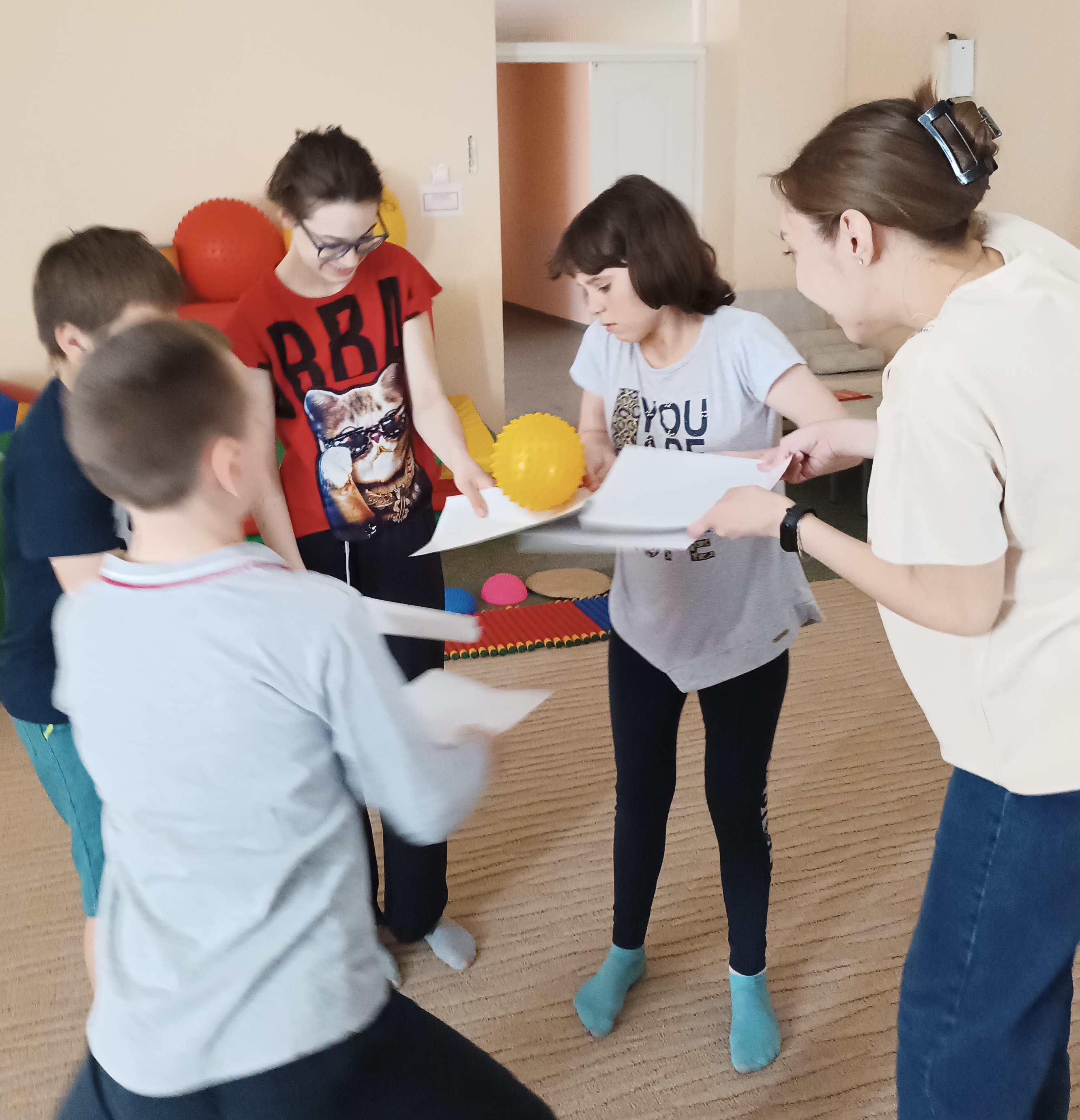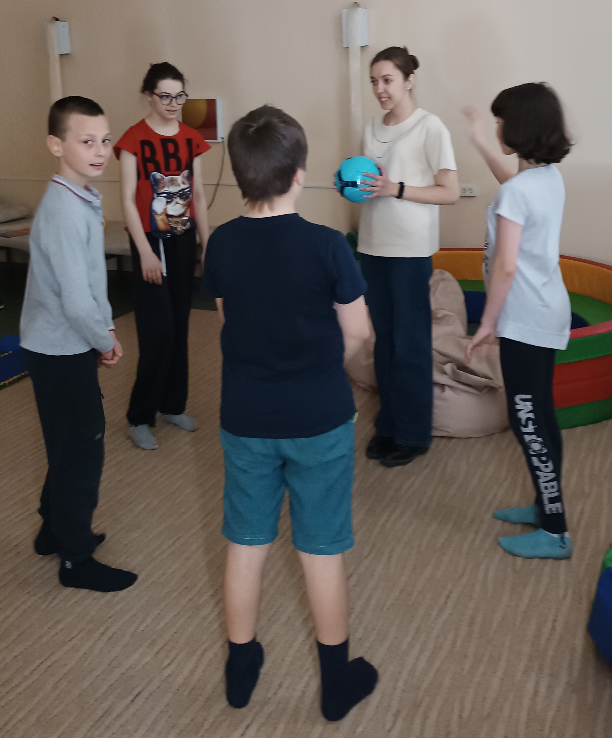 20.04.2023 педагог-психолог Кулаева Т.С. провела групповое занятие с элементами тренинга "Мы – команда" с детьми стационарного отделения.