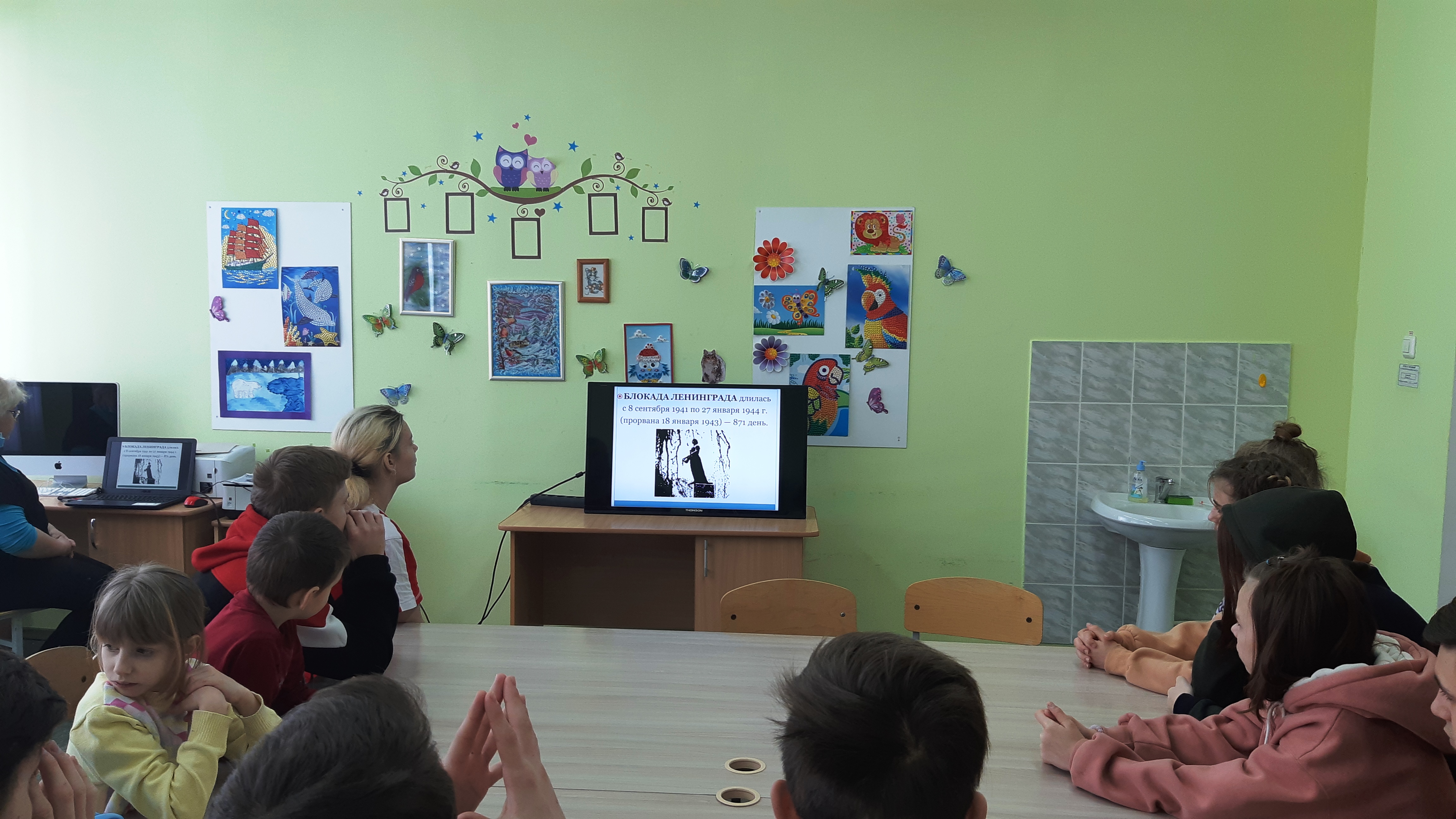 27 января 2021 года в стационарном отделении ГБУ ССЗН «Областной социально-реабилитационный центр для детей и молодых инвалидов» в рамках реализации Всероссийской акции памяти «Блокадный хлеб», проведено занятие «Блокада Ленинграда», посвященное Дню полного освобождения Ленинграда от фашистской блокады. Занятие началось с просмотра презентации «900 дней осады», где ребята познакомились с историческими фактами событий, произошедших в Ленинграде в те страшные годы войны. Несовершеннолетним были выданы листовки и символ Акции памяти - кусочек хлеба весом в 125 грамм. Затем состоялся просмотр художественного фильма «Дневник блокады».