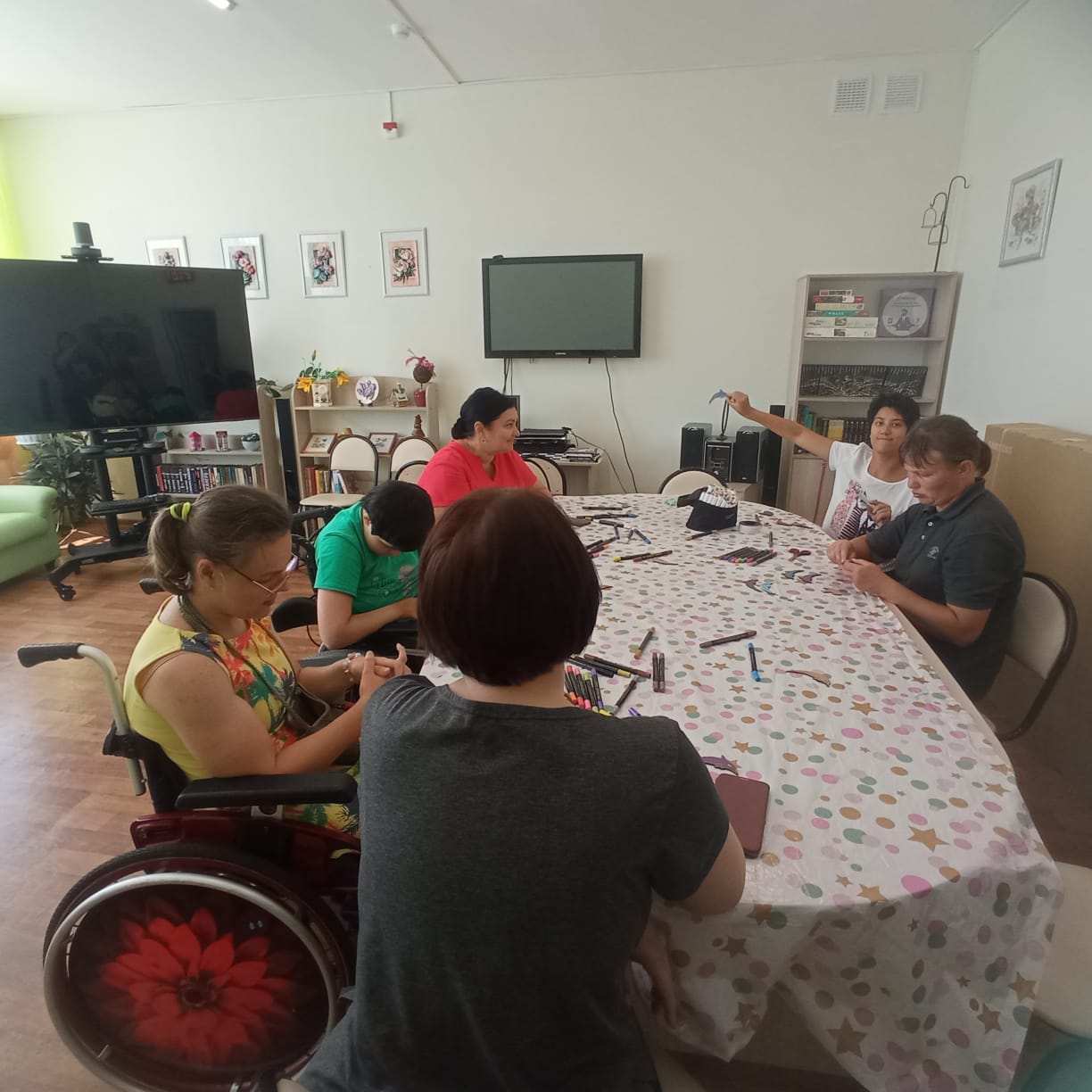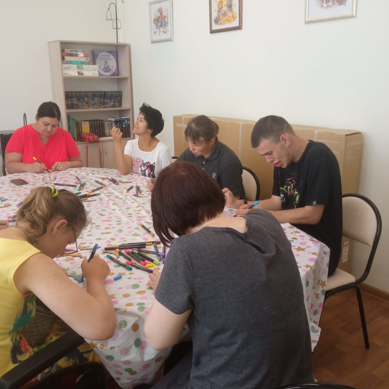 28 июня в отделение учебного (тренировочного) сопровождаемого проживания заглянули гости из АНО "Зато единая семья" из Пензенской областной библиотеки им. М.Ю. Лермонтова. Леди предложили создать уникальных морских животных. Ребята с удовольствием делали дельфинов на магнитах, расписывали их для своих друзей.