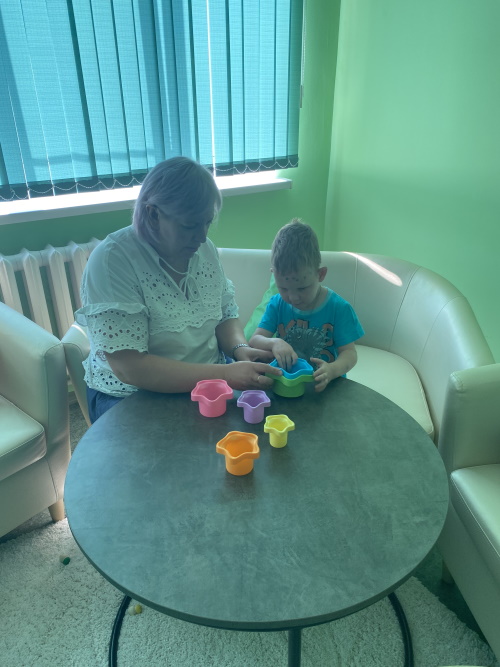 Основной упор коррекционно-развивающей работы был направлен на развитие осязания и мелкой моторики. Для этого медицинский психолог Надежда Николаевна в игровой форме использовала различные виды деятельности. Раскладывание и складывание разборных игрушек (матрешек, пирамидок разной величины), нанизывание игрушек.