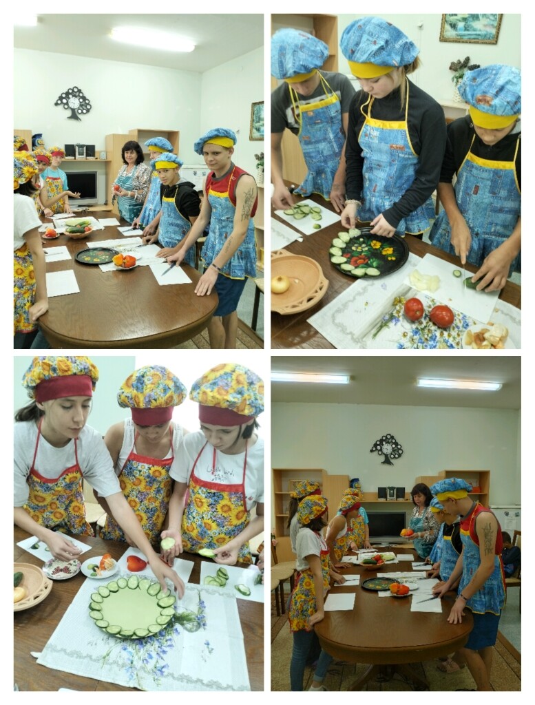 В отделении социального приюта в кружке "Домоводство" прошёл мастер-класс по нарезке овощей. Перед практическим занятием с ребятами вспомнили инструктаж по технике безопасности. Затем ребята разделили обязанности и принялись за дело. Получилось красиво и вкусно.