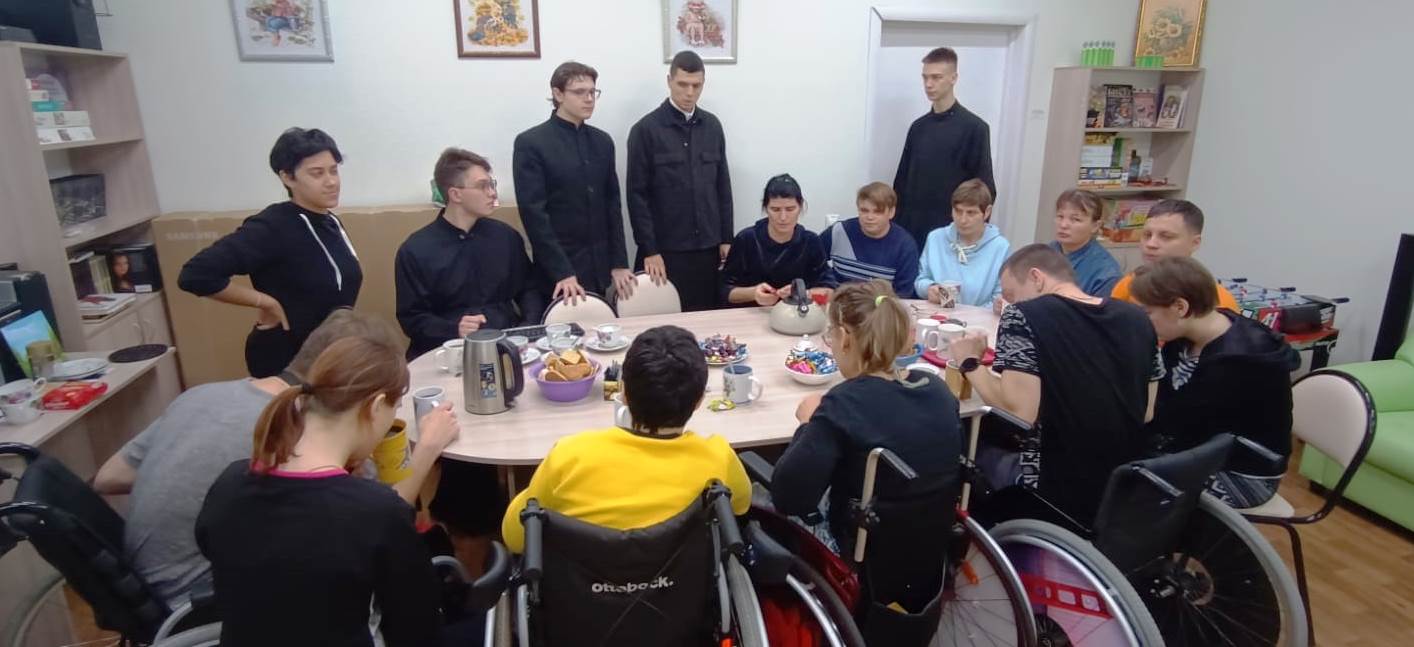 9 ноября 2023 года студенты Пензенской духовной семинарии вновь встретились с ребятами из отделения сопровождаемого проживания. На встрече говорили о любви и вере. Все прошло в форме непринужденной беседы за чаепитием. Ребята смотрели притчи, отвечали на вопросы, спорили о скромности и роскоши. Также семинаристы сделали подарок отделению – Казанскую икону Божией Матери.