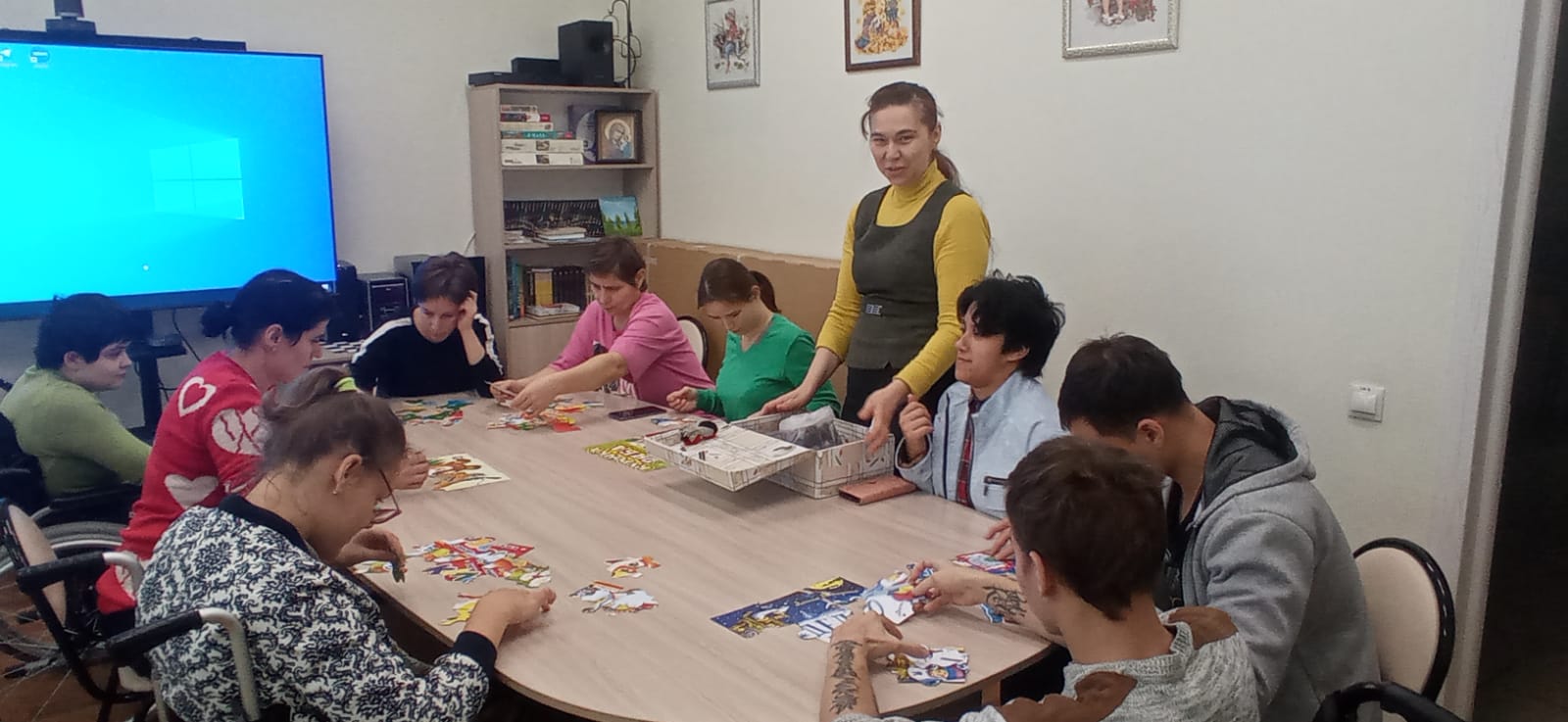 4 декабря 2023 года в отделении сопровождаемого проживания - новые гости – МУК ИБО г. Заречный. Татьяна Яценко, Елена Климкина и Алина Нестерова «закружили» ребят в «Зимней викторине», собрали книжные пазлы, и провели мастер класс по созданию новогодней игрушки – снегиря.