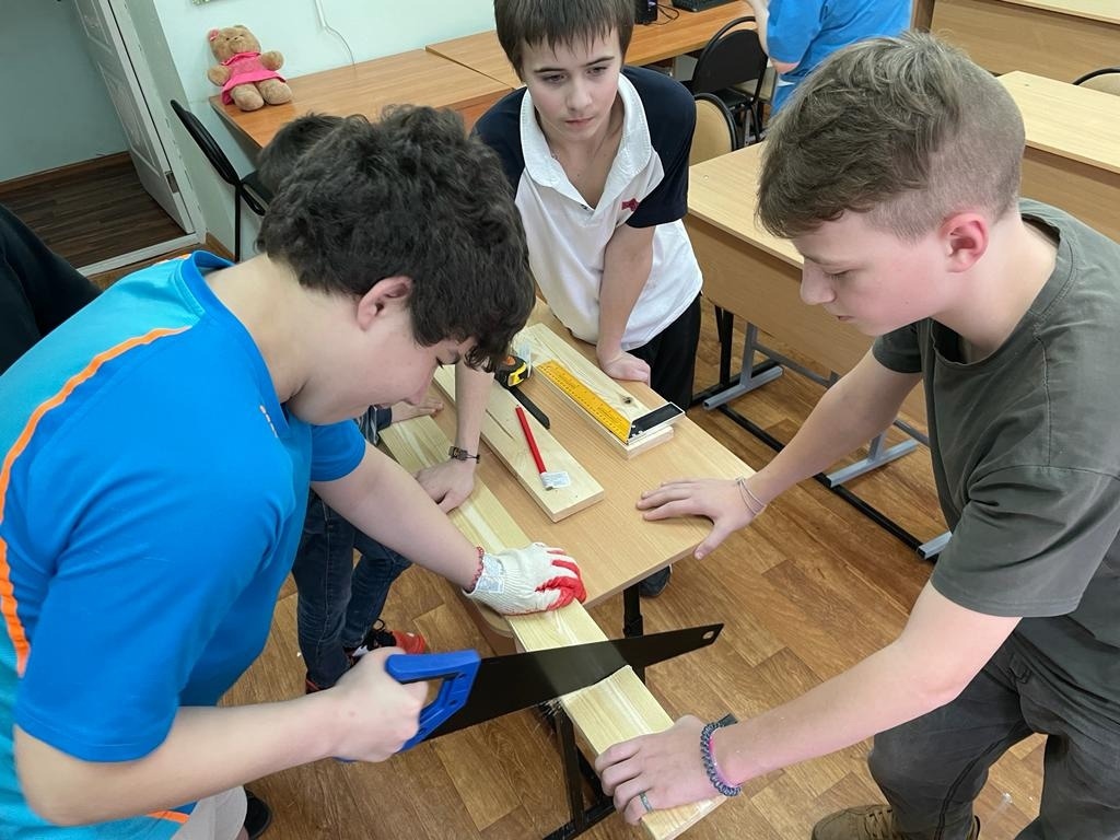 а) с мастером по плотницкому делу ребята научились пользоваться шуруповертом и соединять разными креплениями доски, отрезать доску по разметке и вбивать гвозди в доску. Сделали рамку из доски;
