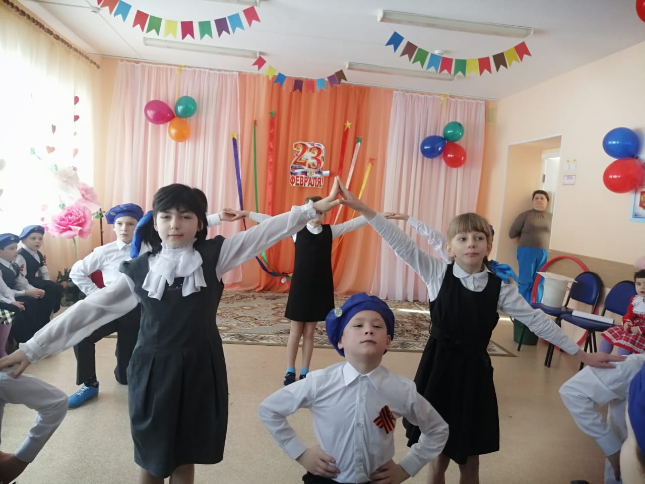 Младшая группа подготовила песни о Российской армии. Ребята старшей группы подготовили танец «Русский парень». Все с воодушевлением пели песни и принимали участие в различных конкурсах. Концерт прошёл на одном дыхании.