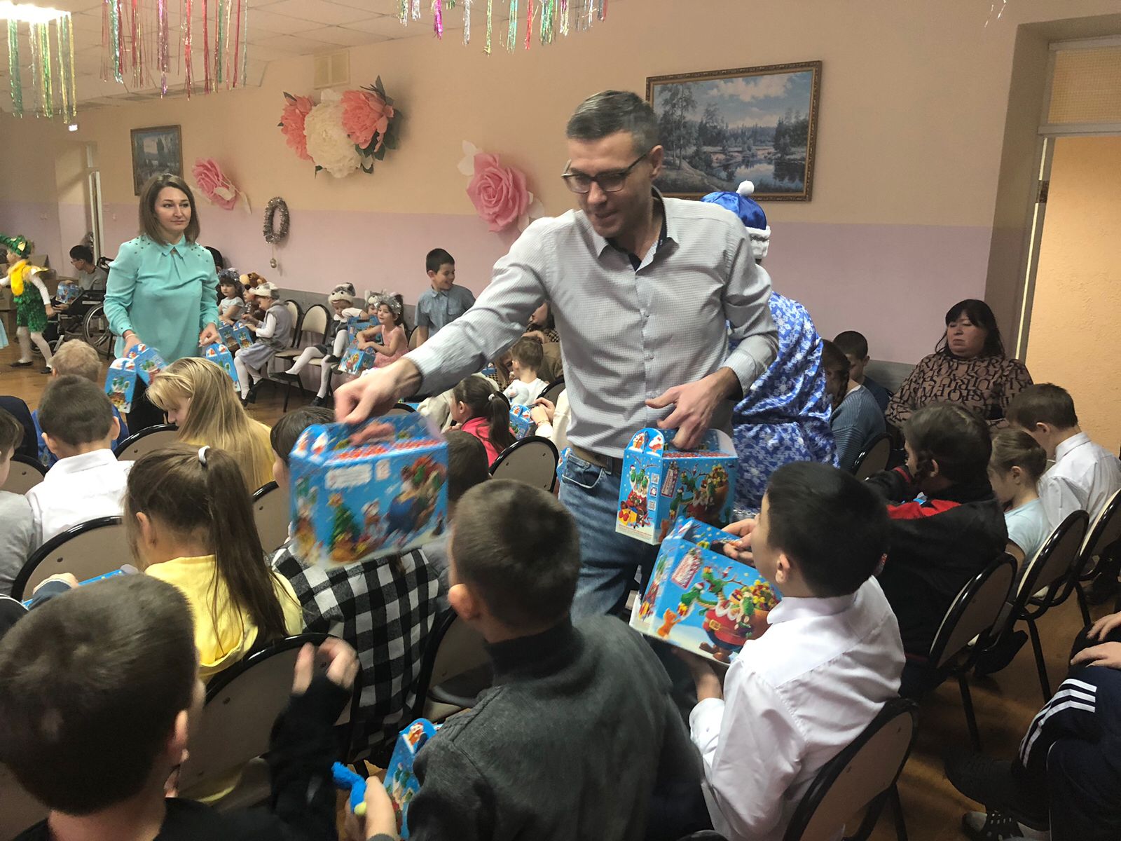 В преддверии Нового года наш Центр посетил заместитель министра труда, соцзащиты и демографии Сергей Александрович Казаков. Сергей Александрович поздравил ребят с наступающими праздниками. Мальчишек и девчонок ждали таинственные превращения сказочных персонажей, конкурсы, игры, чтение стихов и хороводы. Вместе с Дедом Морозом и Снегурочкой они встретили символ наступающего года - Зелëного дракошу. Дети получили сладкие подарки и очень много эмоций и впечатлений, а также зарядились хорошим настроением на весь год!!!