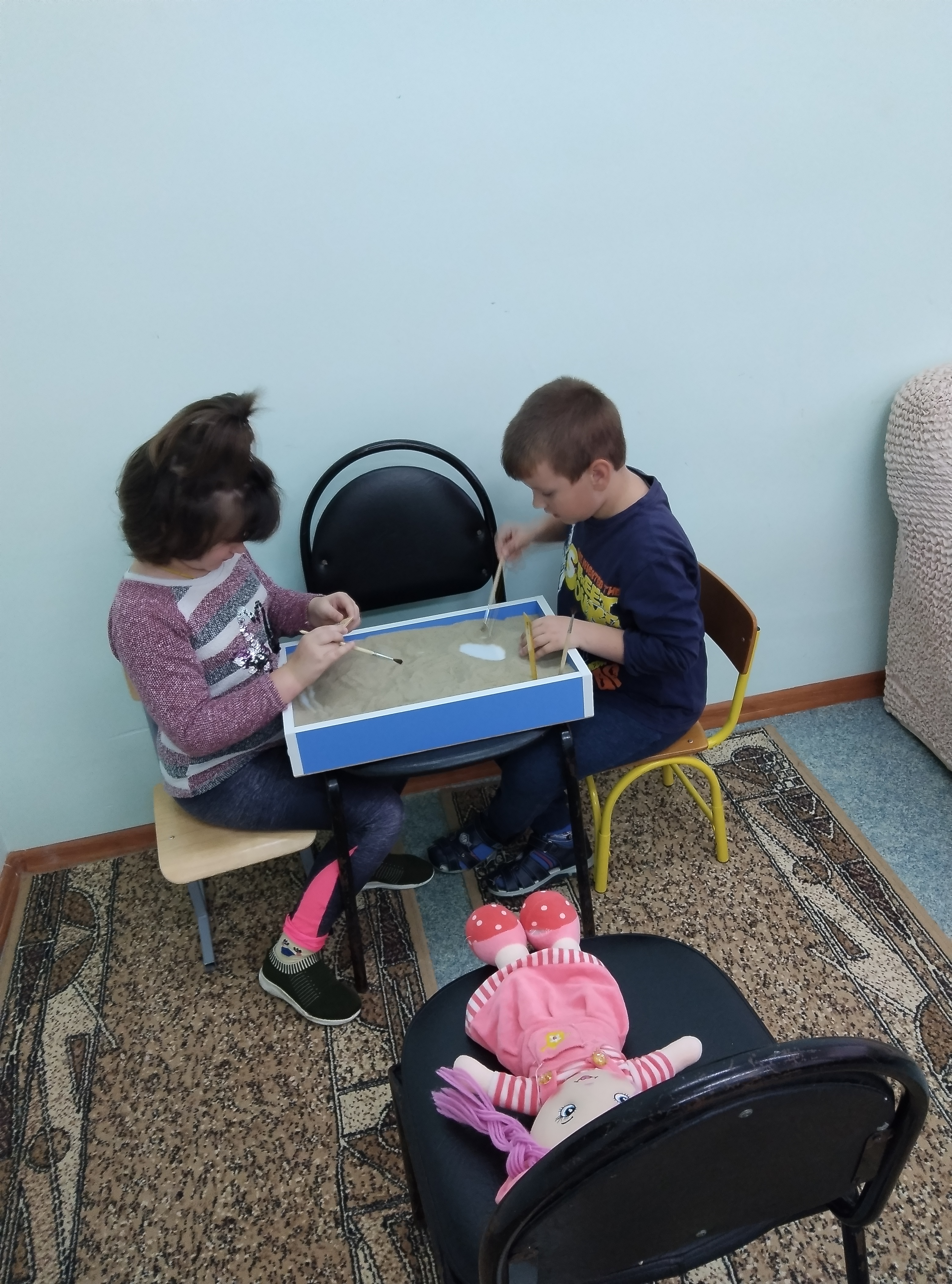 Песочная терапия – мягкий и бережный метод проработки психоэмоциональных травм. На занятии дети создавали рисунки, придумывали истории, развивали новые поведенческие навыки. И главное, каждое занятие с психологом заканчивается улыбкой, хорошим настроением и позитивным настроем на весь день!