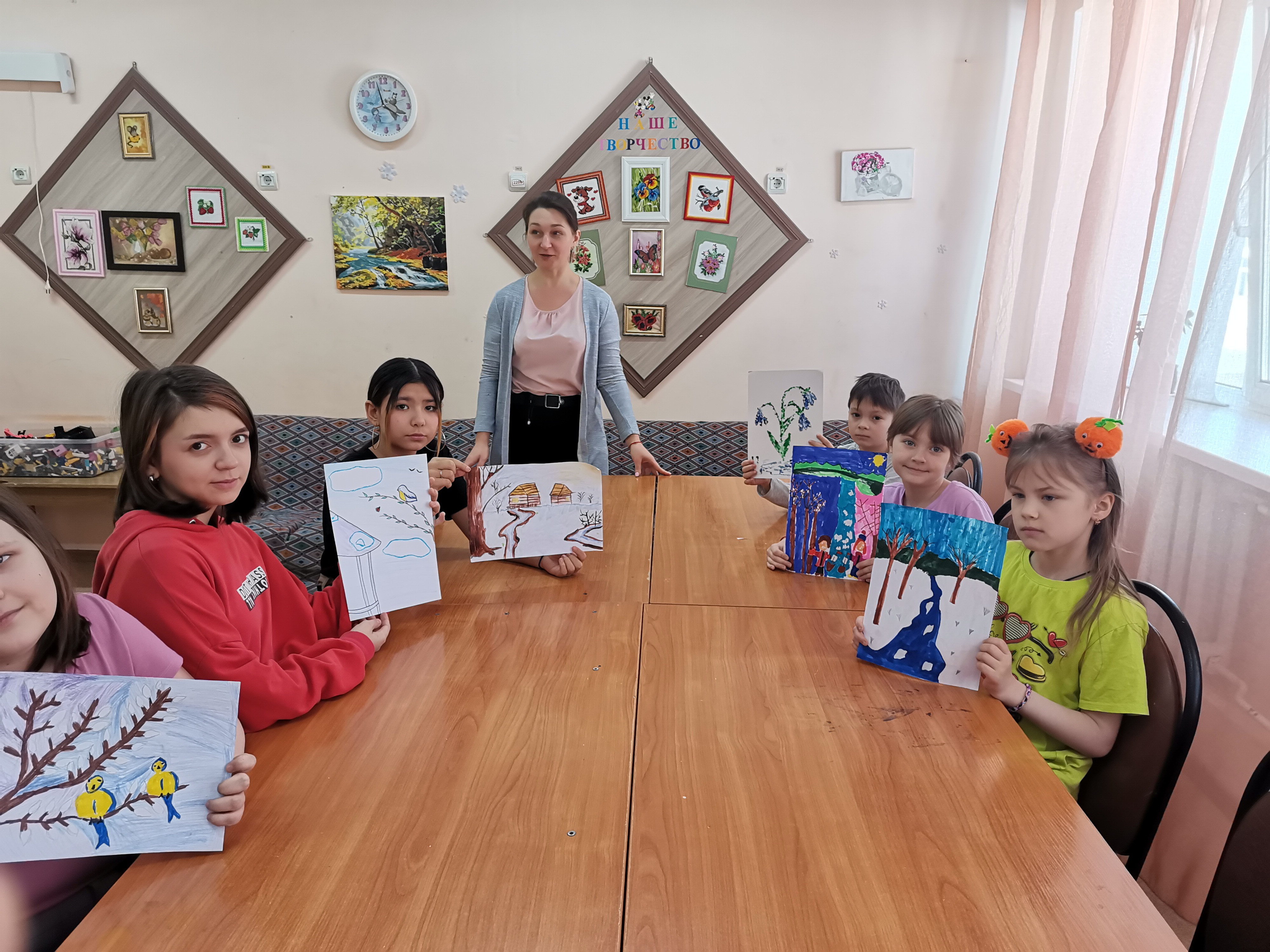 21.03.2024 года, в рамках кружковой работы с детьми отделения социального приюта проведён мастер-класс по рисованию "Весенняя природа ". Наши юные художники рисовали весеннюю природу. Каждый пустил в полет свою фантазию. Кому - то весна представилась угрюмым дождиком, другим - слепящим солнышком, а третьим - зелёной травкой и первыми цветочками.