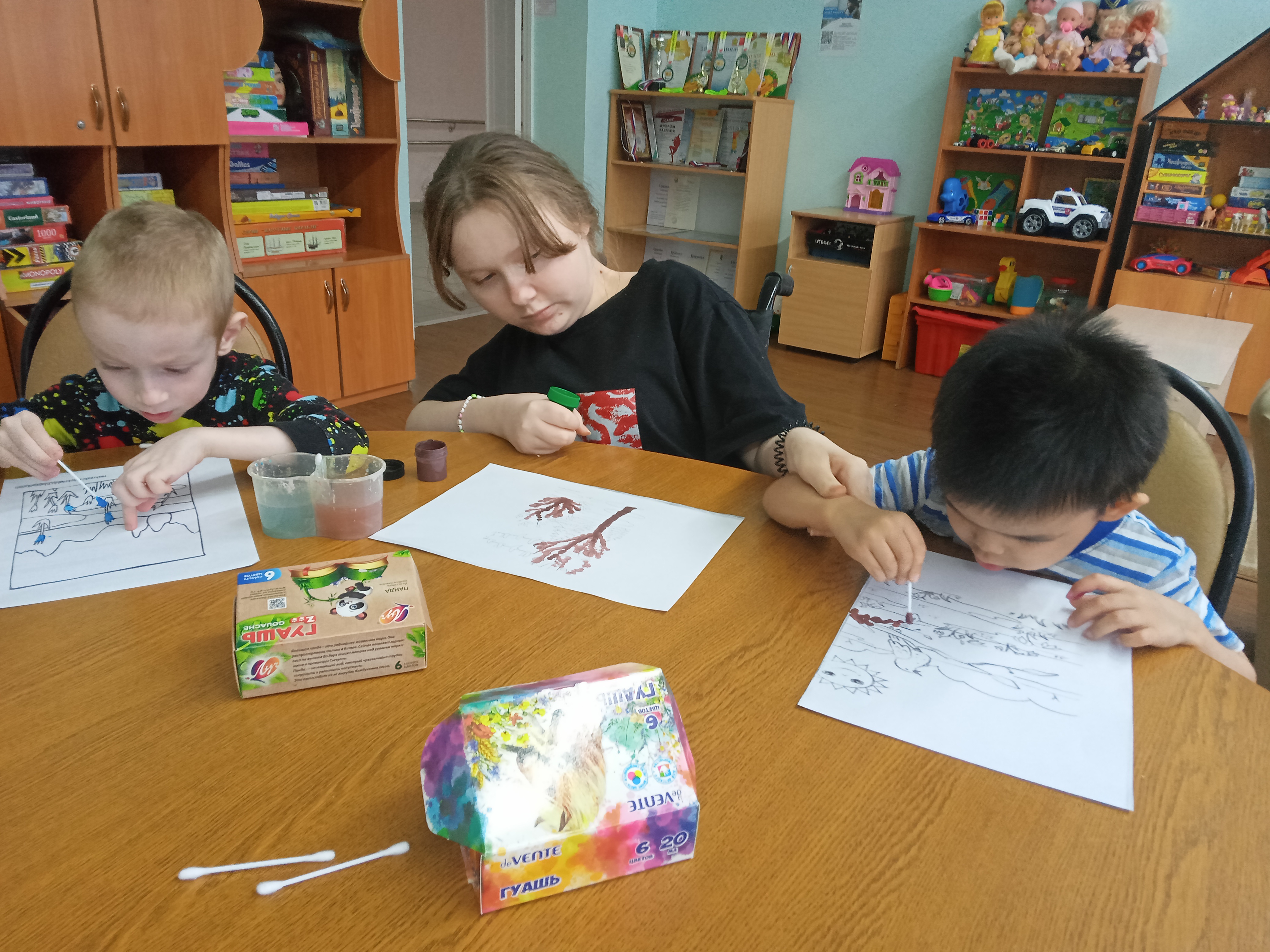 В отделении для детей с особенностями развития прошло занятие на тему "Рисуем весенний пейзаж". Ребята рисовали нетрадиционным методом - ватными палочками. Такой метод очень интересен детям. И вот, что у нас получилось!