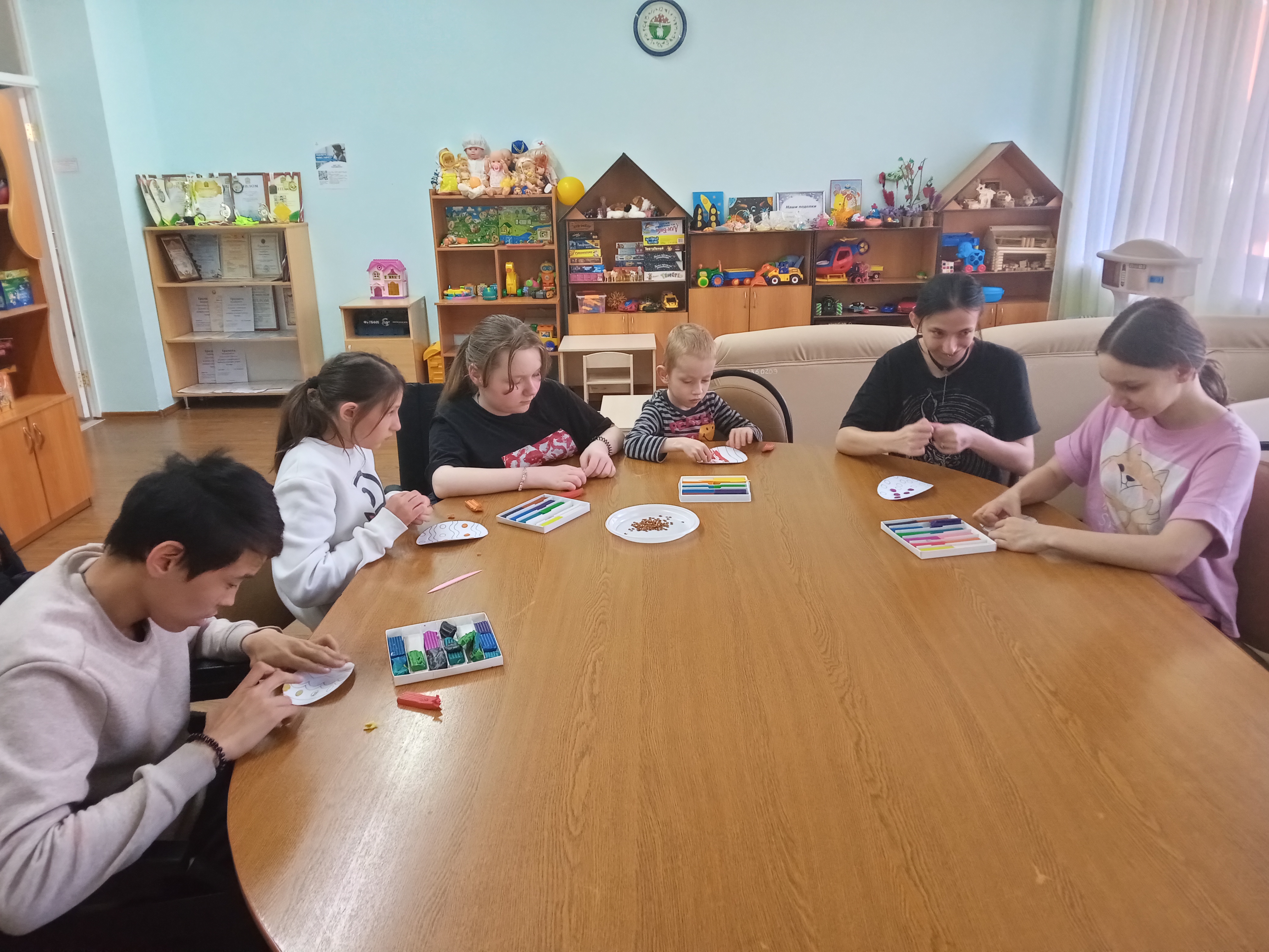 В отделении для детей с особенностями развития ребята лепили "Пасхальное яйцо" в технике пластилинографии. Познакомились с историей и традициями праздника Пасхи. Дети с большим удовольствием принялись за работу, проявили творческое мышление и воображение!