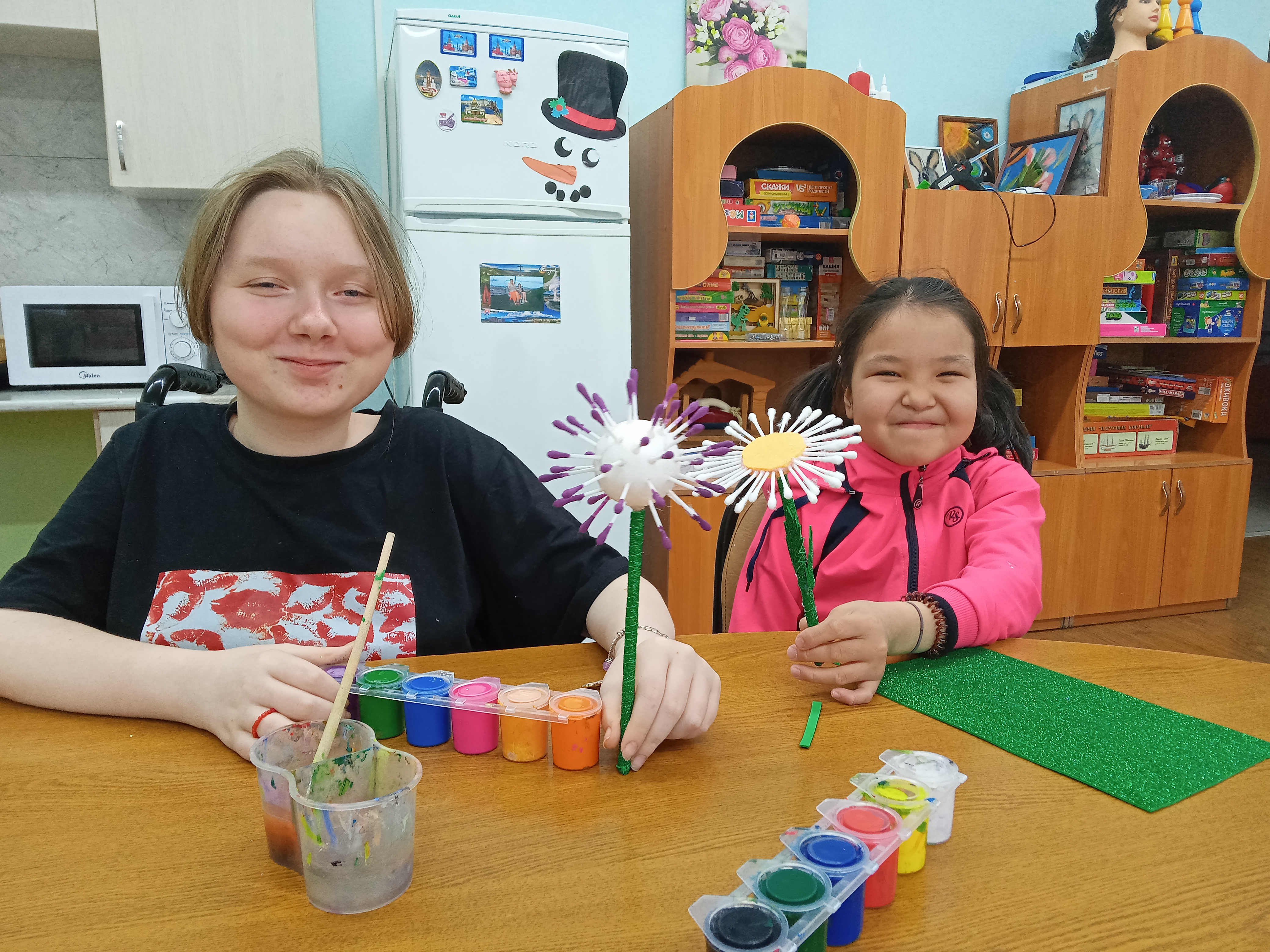 Ребята из отделения для детей с особенностями развития изготовили цветы из бросового материала, из ватных палочек. Дети проявили свои творческие способности и воображение!