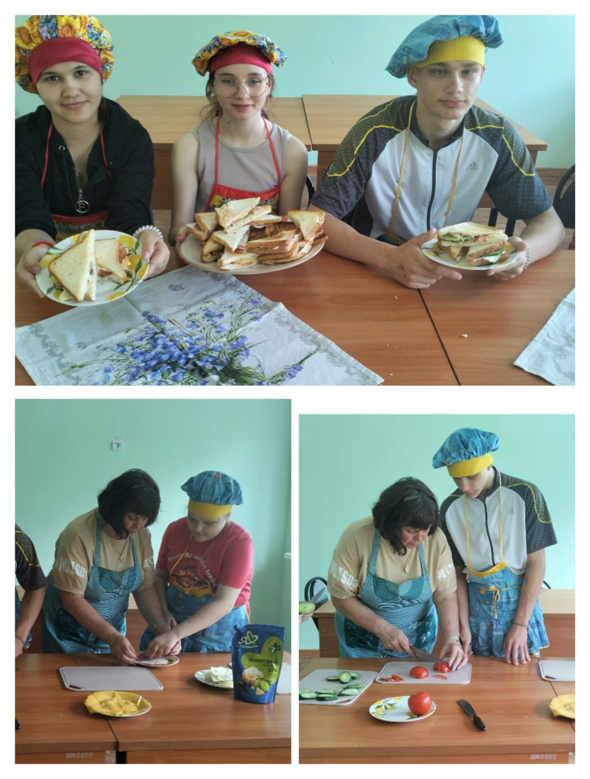 В отделении социального приюта, в рамках кружковой работы "Домоводство" прошел мастер-класс по приготовлению сэндвича. Сэндвич - это вид бутерброда состоящий из двух кусочков хлеба и какой - либо начинки между ними. Ребята с увлечением фантазировали с начинкой - получилось очень вкусно и красиво!