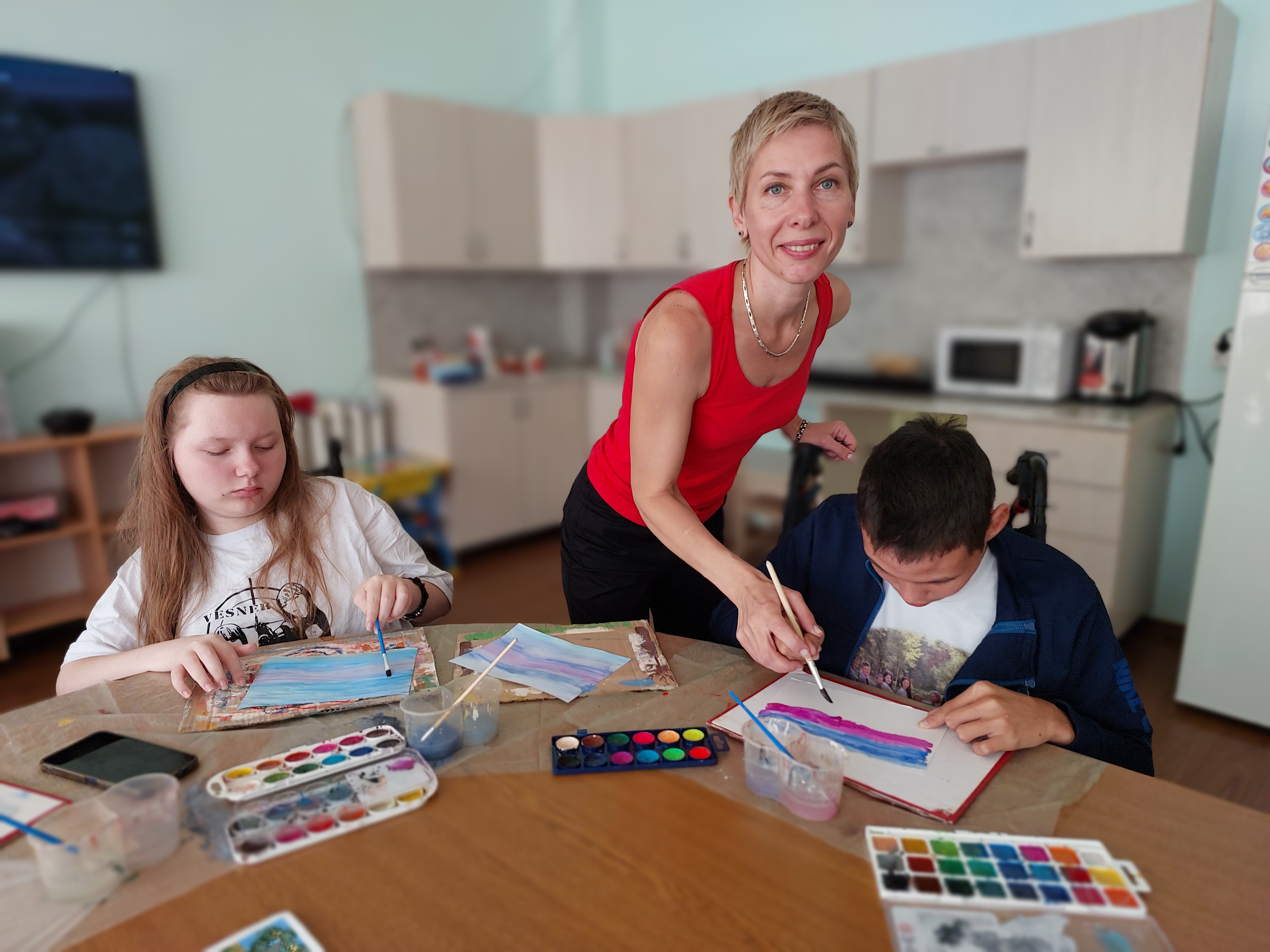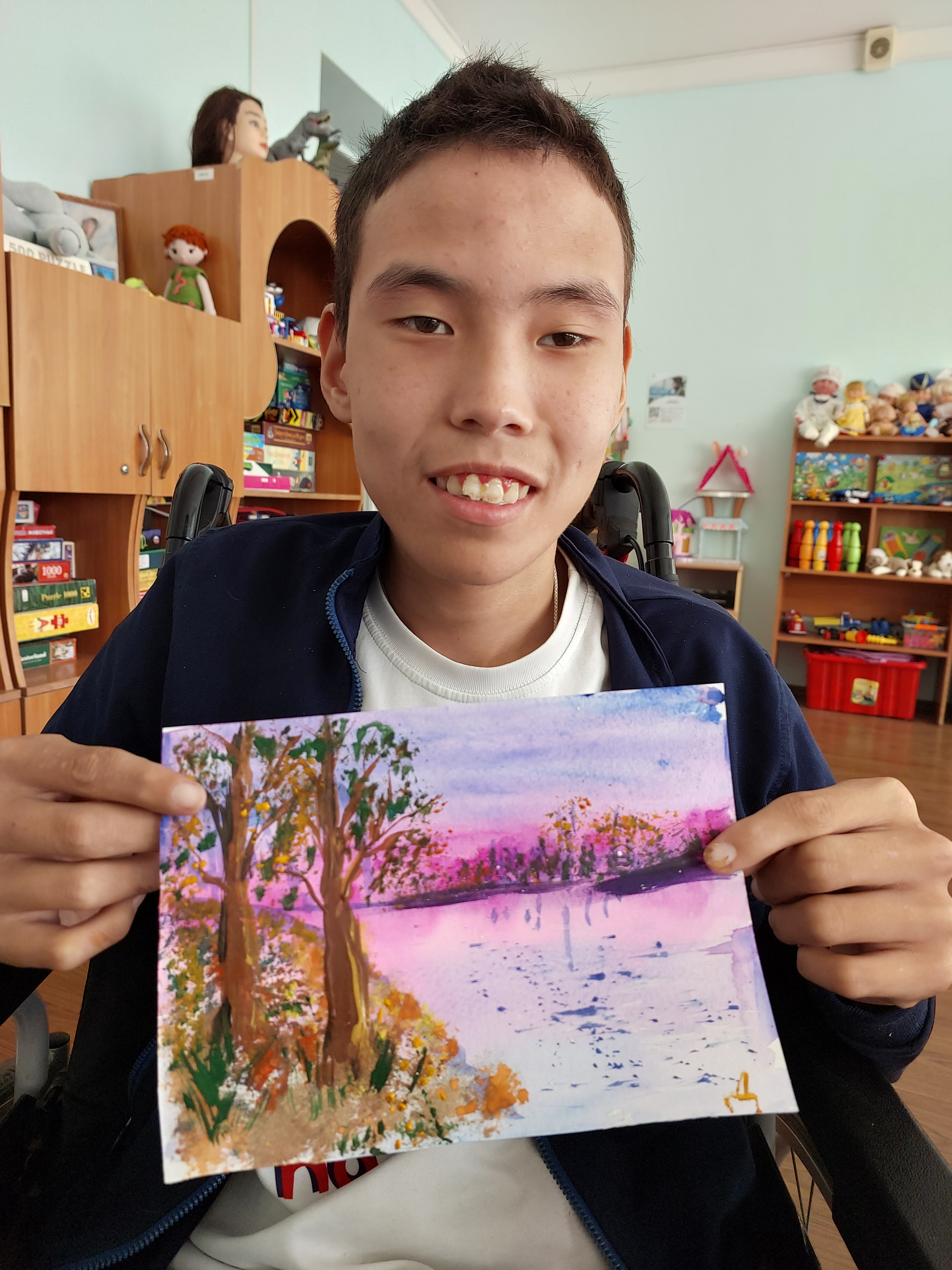 Ребята из отделения с особенностями развития, занимающиеся в кружке «Разбуди в себе художника», нарисовали осенний пейзаж. Это занятие помогло им научиться отражать в рисунках происходящие изменения в природе, а также развить мелкую моторику рук. Кроме того, они получили удовольствие от процесса. Пейзаж был написан в смешанной технике. Для создания своих шедевров ребята использовали акварель и гуашь. Работы детей выставлены в холле отделения, что имеет большое значение для их личностного роста, развития творческих способностей и интеграции в общество.