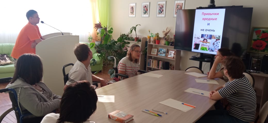 Все мы знаем, что вредные привычки это алкоголизм, курение, наркотики, и не задумываясь отвечаем на вопрос об их наличии категоричным – «НЕТ». А так ли это на самом деле? Возьмем, например, привычку переедать или недоедать, пить много кофе, не спать по полночи – это так же разрушает наш организм. Вот о таких «безобидных» привычках сегодня говорили резиденты отделения сопровождаемого проживания. Ребята рассказывали о том, что они считают вредным, честно называли свои неправильности (компьютерные игры до утра, неправильное питание, желание поспорить и др.), размышляли над тем как с ними бороться. Работая с кейсами по заданной проблеме, они учились видеть общую картину, делать выводы, строить логические цепочки. Итогом обсуждения стало понимание того, что привычки вредными делаем только мы сами, а значит можно их изменить и стать чуточку лучше.