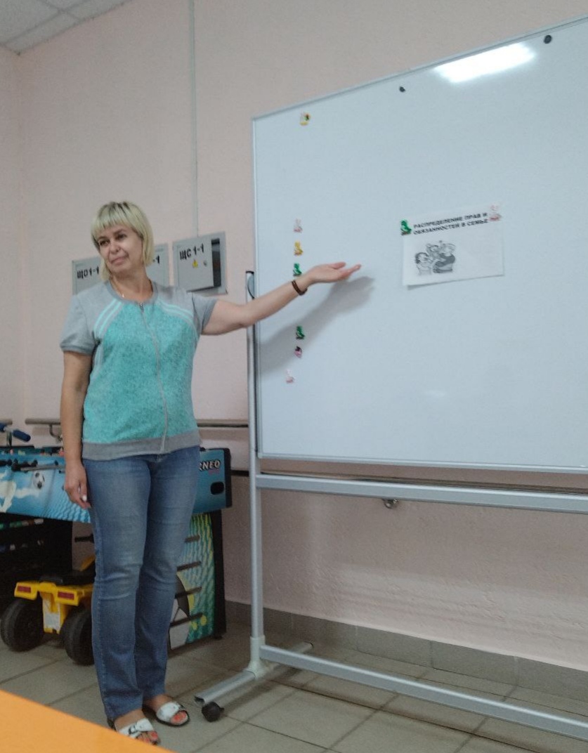 Формированию семейных ценностей и толерантного поведения у подрастающего поколения было посвящено очередное занятие в отделении для детей с особенностями развития. В ходе проведения беседы ребята поразмышляли над вопросами:" Что такое семья?", "Что даёт человеку семья", "Что нужно, чтобы семья была дружной?" Работая в группах, они постарались определить, какие права и обязанности у младших и старших членов семьи. Но главное, что усвоили дети на занятии - это понимание того, что только благодаря любви, взаимопомощи и взаимной поддержке в семье решаются проблемы и выполняется любая работа.