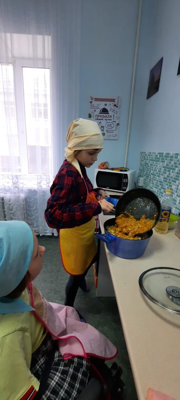 В рамках проекта "Веселая кухня", реализуемого Благотворительным Фондом "Нарконет" при поддержке Фонда Президентских грантов, 20.04.2021 команда "Нарконет" побывала в отделении для детей с физическими недостатками ГБУ ССЗН "Областной социально - реабилитационный центр для детей и молодых инвалидов". Вначале ребята вместе с поваром – Дианой приготовили «макароны с тушенкой». Диана, рассказала, как правильно готовить блюдо и девчата с большим энтузиазмом включились в процесс приготовления. Кульминацией мероприятия стала церемония награждения участников за победы в номинациях конкурса "Сделано Вкусно", который проходил 29.03.2021 в центре. Все участники данного мероприятия получили массу приятных впечатлений и положительных эмоций.