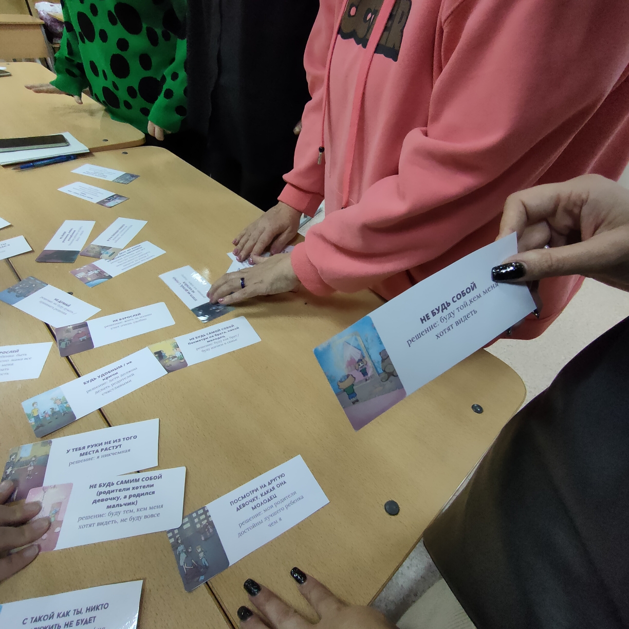 В субботу, 9 ноября состоялась первая встреча очередного клуба «Устойчивая семья». Цель работы клуба – помочь семье выстроить комфортные отношения друг с другом. На первой встрече мы обсуждали установки, которыми мы руководствуемся в жизни и выясняли, какие из них положительные, а какие мешают нам и портят отношения в семье. В этом нам очень помогли метафорические карты, которые позволили глубже проработать эту проблемную зону. И самое главное, мы поговорили искренне, честно, откровенно. Мы благодарны нашим участницам за это доверие. Встречи клуба «Устойчивая семья» проходят по субботам, Вы можете присоединиться к этой группе. Участие в клубе совершенно бесплатно.