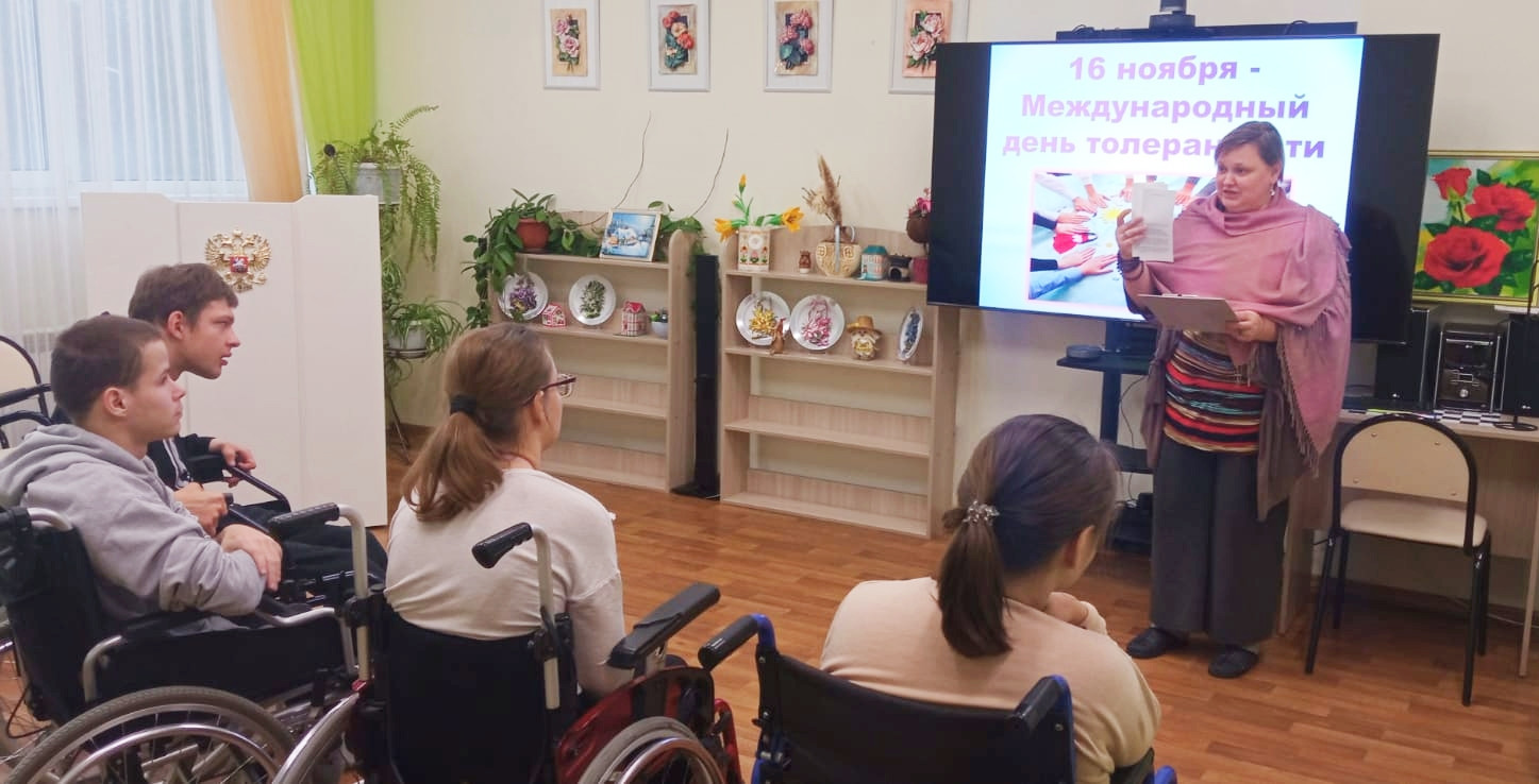 Терпение – это добродетель, освоить которую не всегда просто. 16 ноября в мире отмечается международный день толерантности, в преддверии этого праздника для резидентов отделения сопровождаемого проживания прошел информационный час «Что такое толерантность?». Толерантность (терпимость) – многосоставное, сложное понятие, в настоящее время очень популярное, поэтому стоит обратить на него особое внимание. Жить в мире без принятия других устоев и ценностей очень сложно. Ребята узнали разные значения понятия «толерантность», вспомнили характерные черты толерантной личности, с помощью теста проверили, насколько они могут быть терпимы и добры к другим.
