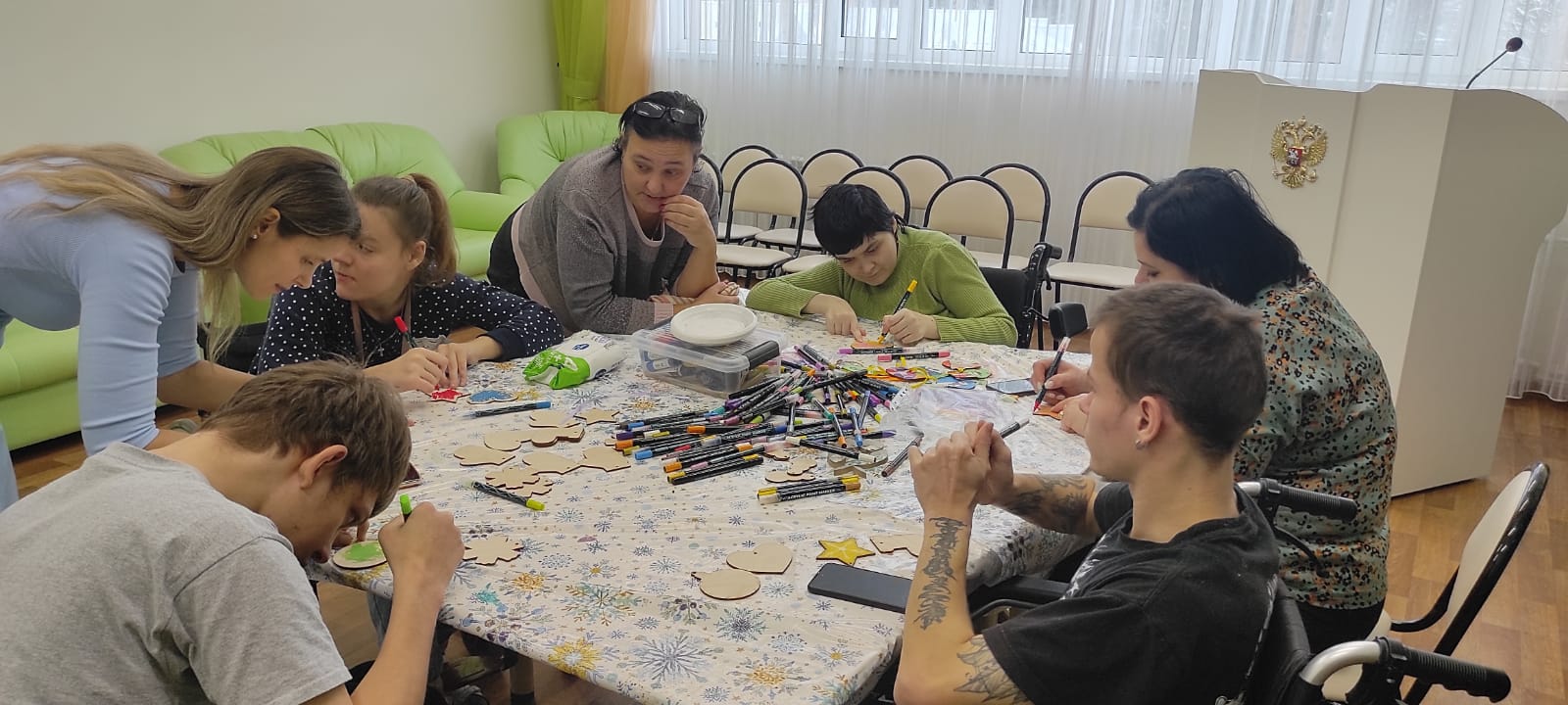 Настала долгожданная пятница, пришло время принимать гостей. Сегодня отделение сопровождаемого проживания радостно поприветствовало АНО «Зато Единая семья». Ребятам показали мастер - класс по изготовлению елочных игрушек. Процесс настолько затянул наших резидентов, что они даже не заметили, как пролетело время в дружеской компании. Игрушки получились очень яркие и неповторимые. А еще ребятам подарили новогодние подарки, за что они были очень благодарны и невероятно довольны. Спасибо за душевное времяпрепровождения. Ждем АНО «Зато Единая семья» в гости снова!