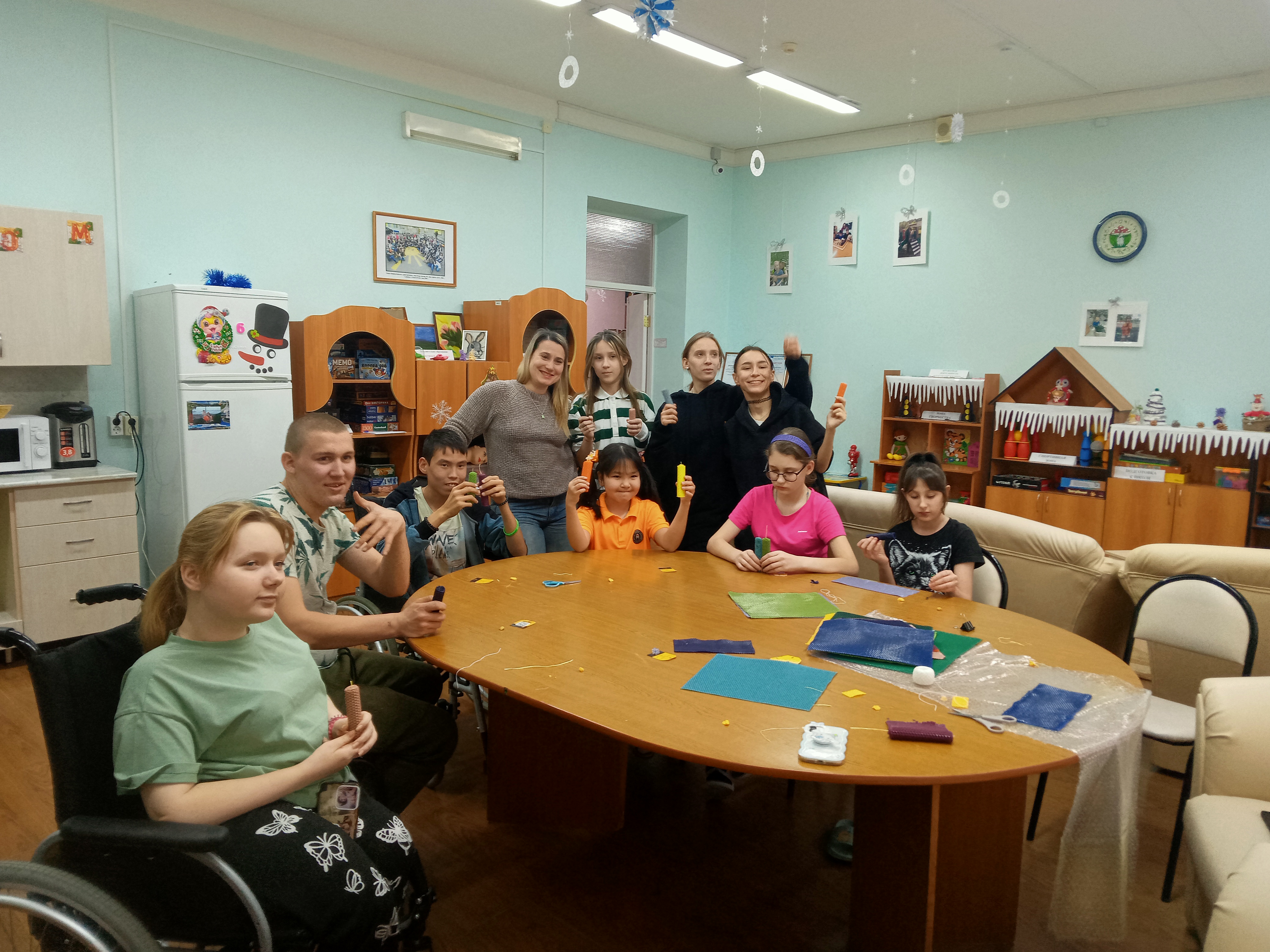 09.12.2024 года отделение для детей с особенностями развития встречали гостей, в этот раз это были "Квартал Луи", участники проекта Ма_Штаб. Нашим ребятам показали мастер - класс по изготовлению свечей из вощины, а так же дети создавали фигуры из воздушного пластилина. Каждый смог вдохновиться процессом творчества и реализовать свои идеи, воплощая их в оригинальные фигуры. Встреча с гостями прошла в дружественной и тёплой атмосфере. Мы с нетерпением ждём новых встреч!