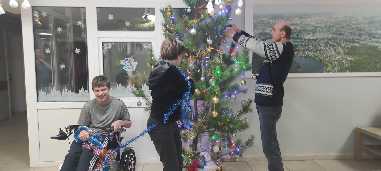 С каждым днем отделение сопровождаемого проживания становится всё краше. Холл и комната отдыха уже украшены, пришло время наряжать ёлку! Процесс украшения выглядит как настоящее колдовство: из обычной, невзрачной ёлки мы делаем ее красочной и не похожей ни на одну другую. Ребята с удовольствием участвуют в процессе украшения, ведь отделение для каждого уже стало родным домом, а дома что создают в первую очередь? Уют! В начале месяца резиденты даже не задумывались о том, как украсить свои комнаты, но вдохновившись всеми мастер - классами и процессами создания элементов декора, у каждого появились новые идеи, задумки, а главное - желание сделать свою комнату праздничной и красивой. Если у вас еще не появилось новогоднее настроение, то самое время начать проводить новогодние киновечера, изготавливать разные украшения и проводить вечера в дружеском кругу, тогда идеи сами польются, и желание встретить этот Новый год неотразимо – сразу появится.