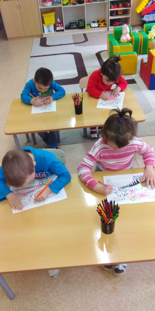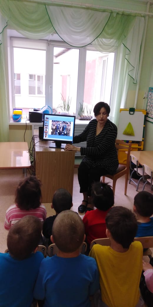 В рамках формирования у подрастающего поколения активной жизненной позиции, патриотического сознания и уважения к участникам Великой Отечественной войны, 7 мая 2021 года, в дошкольной группе отделения социального приюта ГБУ ССЗН "Областной социально — реабилитационный центр для детей и молодых инвалидов" была проведена беседа на тему "День Победы". В ходе просмотра слайдов презентации дети узнали значимость Дня Победы, о традициях его празднования, о Великой Отечественной войне, о трудностях жизни их ровесников в те тяжелые годы. Дети с удивлением и восхищением понимали, какой огромный вклад внесли советские люди в Победу. Затем малыши окунулись в мир творчества: им предстояло нарисовать рисунки на военную тематику. Во второй половине дня ребята вместе с воспитателем оформили "Окно Славы".