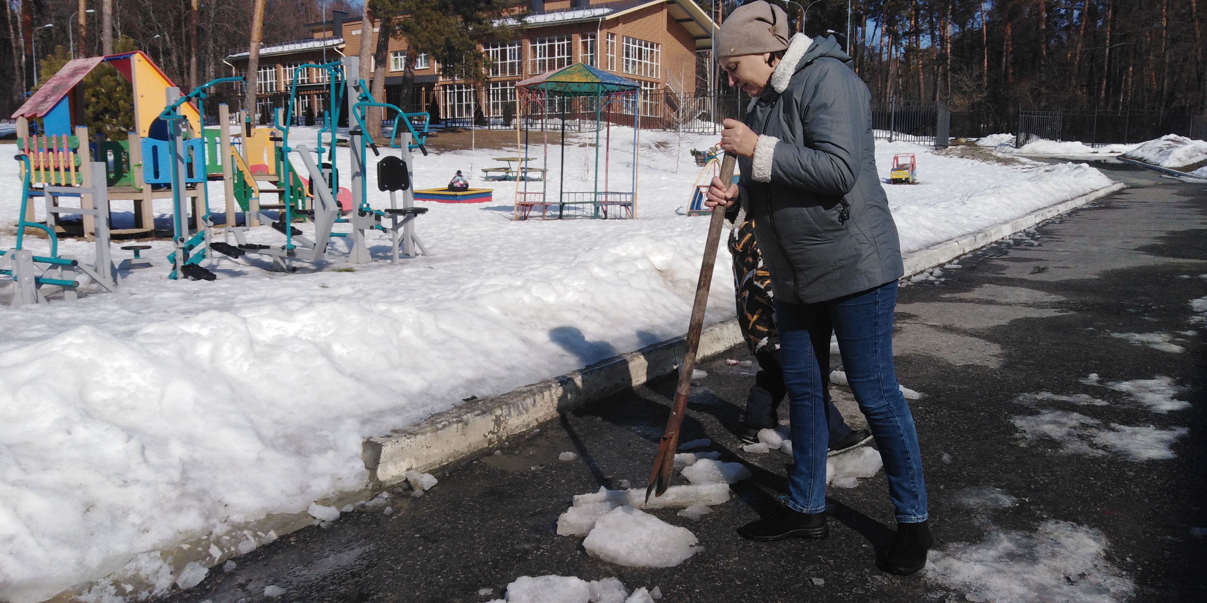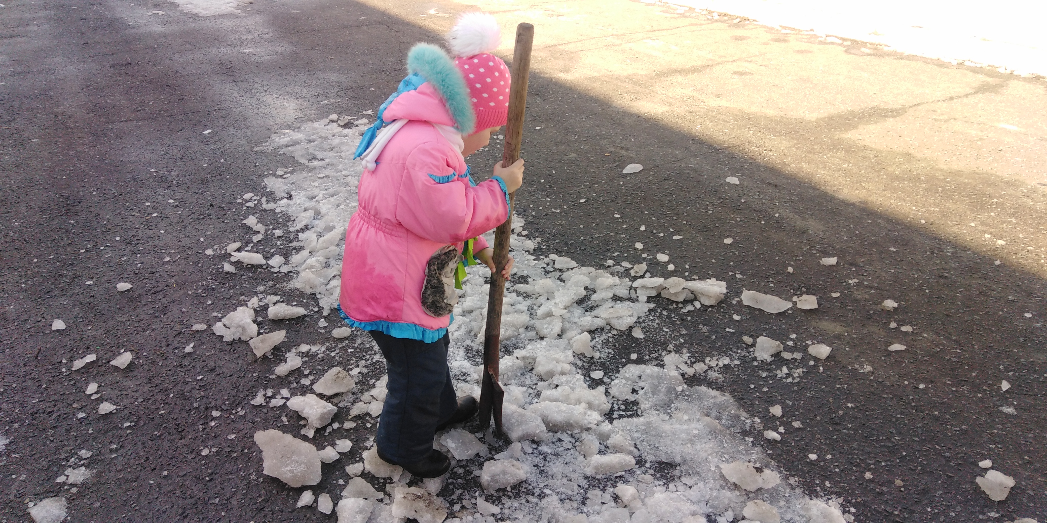 Наступили теплые солнечные весенние денечки. Санки и ледянки убрали до следующей зимы. Как же хочется быстрее оседлать своих "коней" - велосипеды и самокаты! Но мешает нерастаявший снег на тротуаре! Дошколята из отделения социального приюта решили помочь скорейшему таянию льда. Все потрудились на славу, уже завтра асфальт окажется полностью освобождённым от ледяных островков!