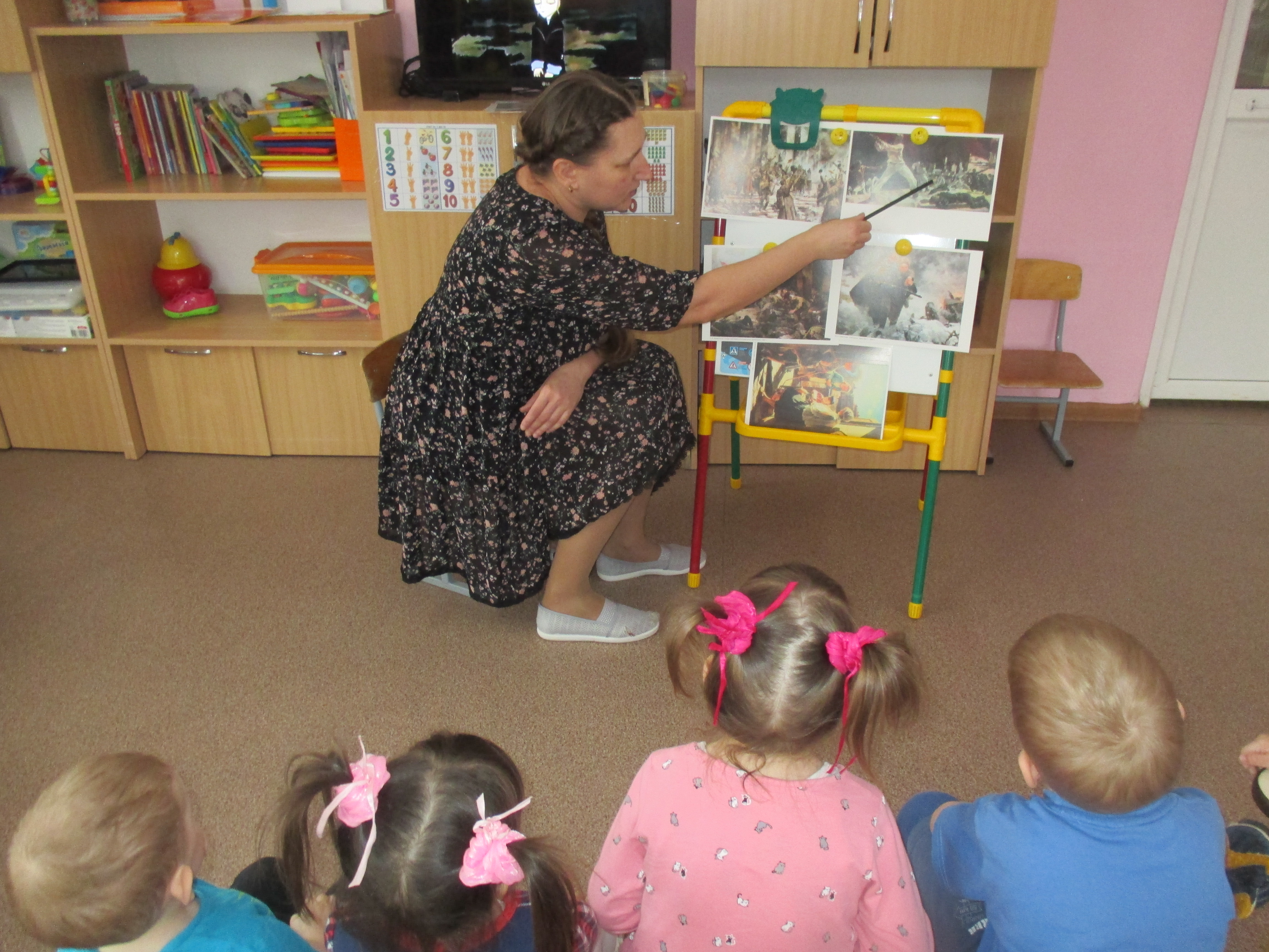 14 марта в Кузнецком филиале, в соответствии с медиопланом по информационному освещению мероприятий посвящённых 80-летию Победы в Великой Отечественной войне воспитатели рассказали детям, используя сюжетные картинки о печальных и знаковых страницах истории своей Родины. Дети должны с малых лет знать, чего стоило героям войны освободить родную землю из - под гнета захватчиков. И лучше всего в этом помогут тематические мультфильмы. Они привлекают и удерживают внимание ребёнка анимацией, попутно рассказывая истории о подвигах солдат и простых людей, переживших то суровое время. Мультфильмы: «Солдатская сказка», «Солдатская лампа» являются отличным напоминанием о том, что память о павших на войне героях должна быть всегда жива, и в сердце не должна угасать любовь к ним. Такие мероприятия с дошкольниками заставляют ребёнка задуматься, что же это за война, которую празднуют во всём мире уже много десятков лет и воспитывают у детей трепетное отношение к празднику Победы, уважение к заслугам и подвигам воинов Великой Отечественной войны.