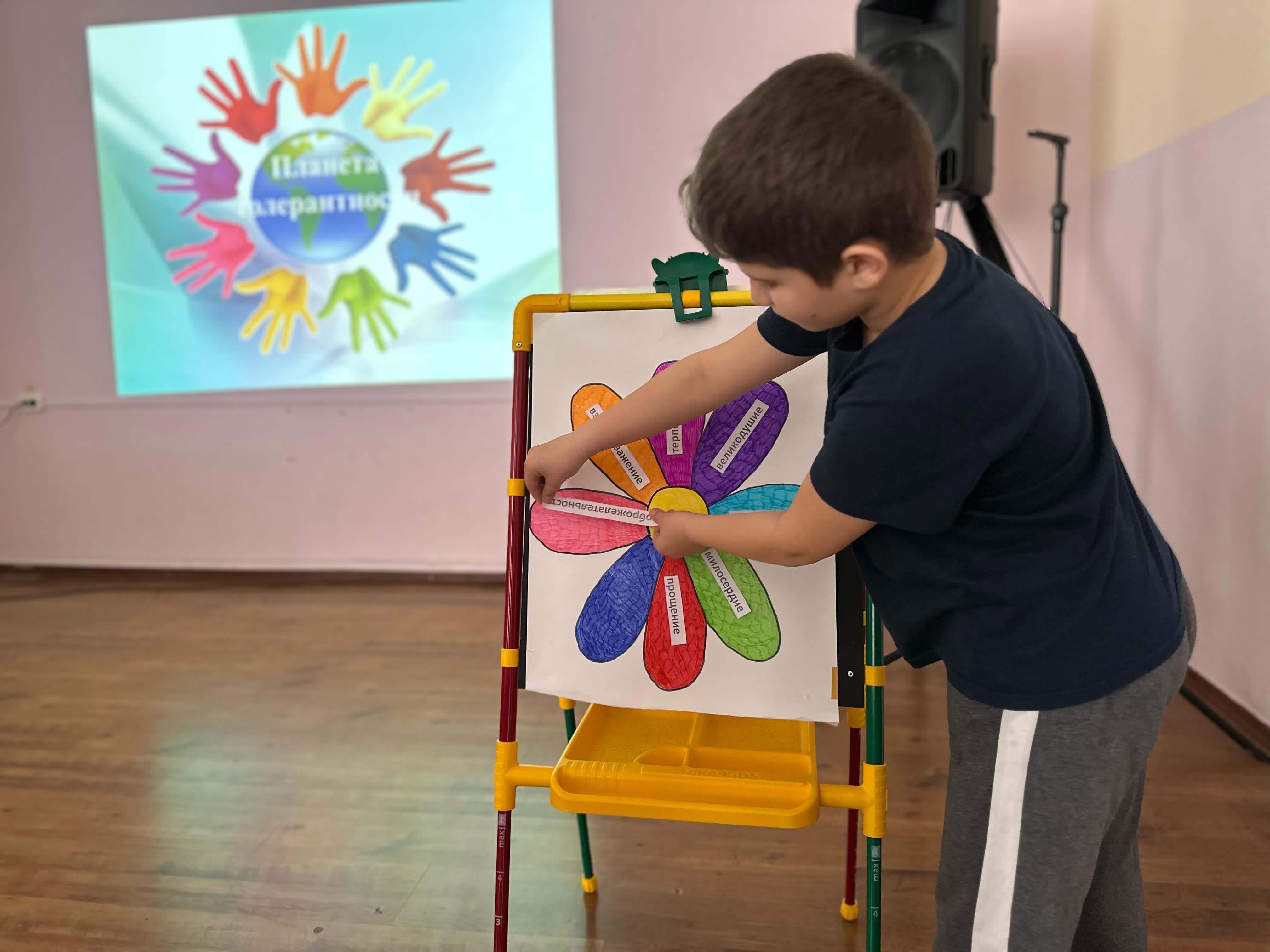 В стационарном отделении Центра прошло открытое занятие «Планета толерантности». Воспитатель Пятаева Алмаза Геннадьевна обсудила с детьми, как важно взаимоуважение с окружающими. Ребята узнали, что значит толерантность в разных культурах и на разных языках. После занятия педагогический коллектив Центра отметил профессионализм специалиста, индивидуальный подход к детям, а так же грамотно построенное занятие.