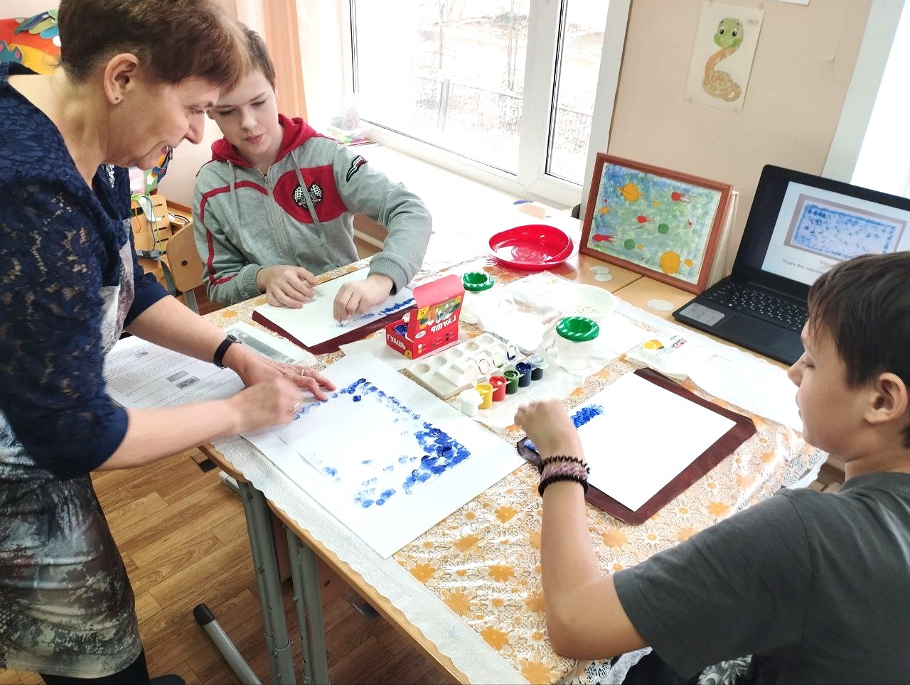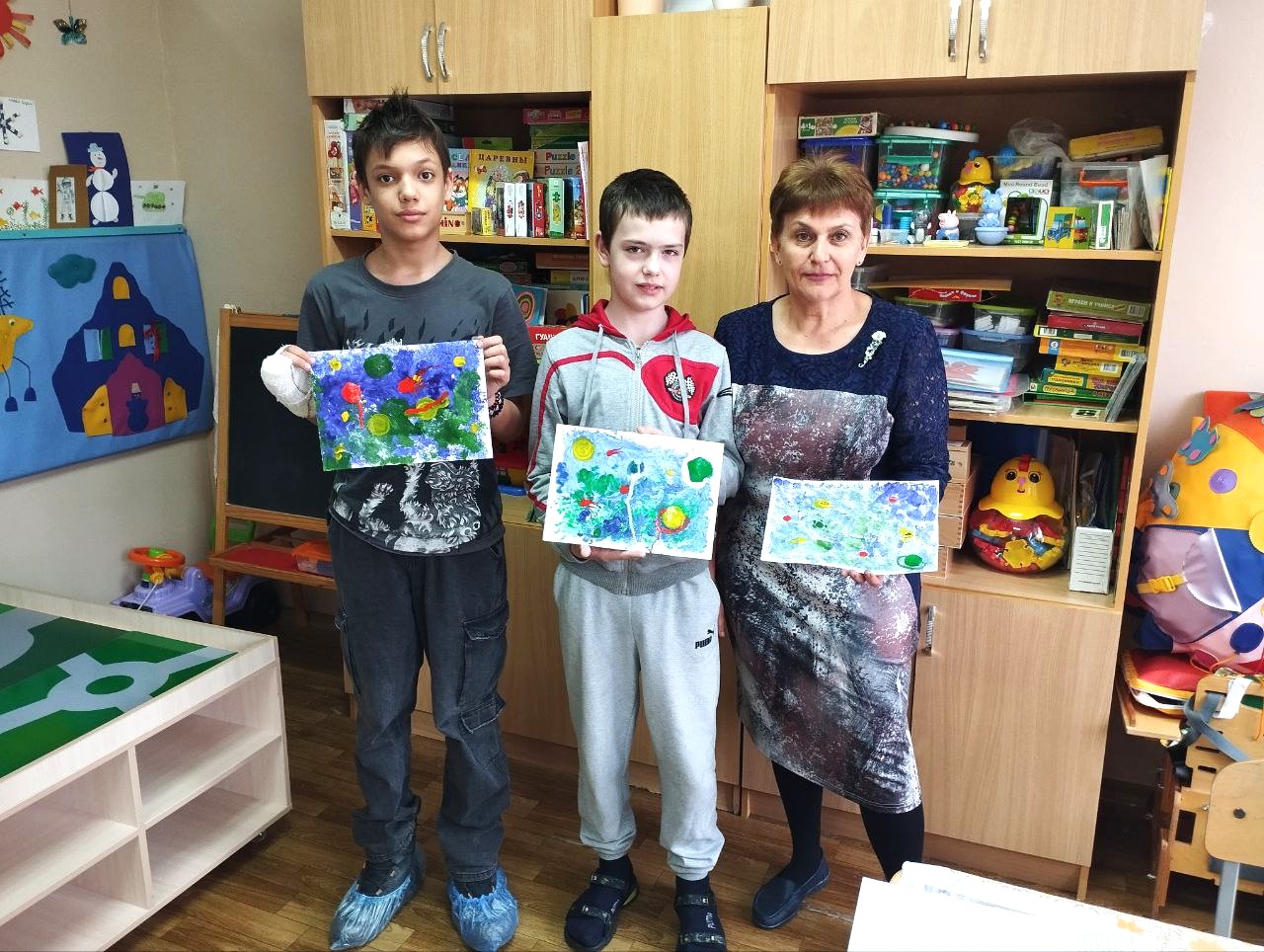 Космос — это нечто загадочное и неизведанное. Это мир планет, звёзд и других непонятных объектов, а также это не только место для исследований, но и источник вдохновения и мечтаний. В отделении дневного пребывания педагог дополнительного образования провела открытое занятие, посвященное таинственному и неизведанному космосу. Ребята вспомнили строение солнечной системы, планеты, небесные тела, выучили новую для себя дату – 12 апреля, День космонавтики и самого первого космонавта, совершившего полет в космос, Юрия Алексеевича Гагарина. А еще педагог научила ребят новой нетрадиционной технике рисования – рисование мятой бумагой и конечно же темой рисунков был космос. Ребята рисовали космическое пространство, кометы, метеориты, планеты при помощи смятых листов бумаги. Получились очень красивые и оригинальные рисунки!