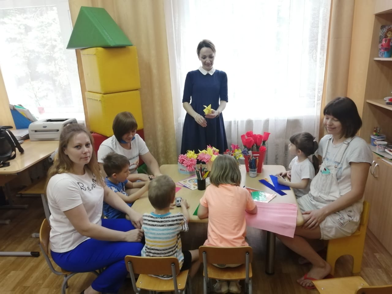 19.05.2021 в отделении дневного пребывания для родителей и детей прошёл мастер-класс "Цветы из бумаги", который провела педагог дополнительного образования Петровская Е.С. Техника изготовления цветов очень заинтересовала родителей, а детям было интересно экспериментировать. В ходе работы родители научились изготавливать цветы из разных видов бумаги, использовать подручные материалы для работы и мастерить совместно с ребенком. На практике увидели, что работа с бумагой помогает в развитии воображения, синхронности рук, координации движений, глазомера. Позволяет осваивать сенсорные эталоны (цвет, форма, величина). Всем участникам мероприятия так понравилось мастерить цветы из гофробумаги, что к заключительной части мастер — класса получился красивый букет цветов!