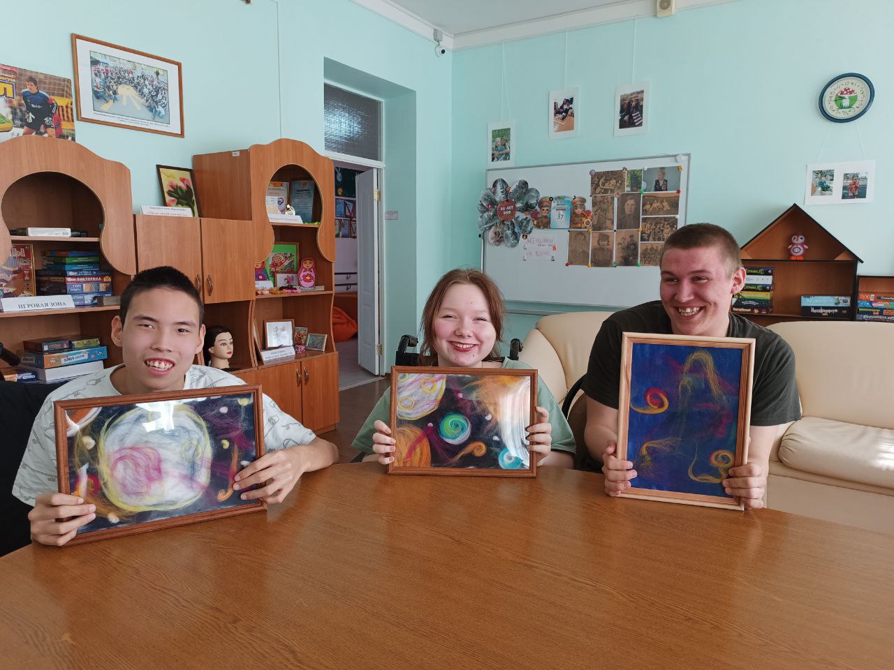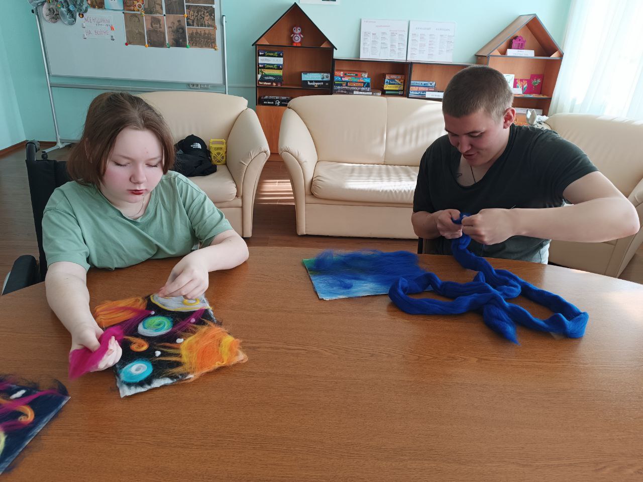 В отделении для детей с особенностями развития прошёл мастер - класс по рисованию шерстью на тему космоса. В ходе занятия воспитанники поговорили о значимых и интересных фактах о космосе. Вспомнили первого космонавта Юрия Гагарина, узнали о четвероногих космонавтах - Белке и Стрелке, Угольке и Ветерке, которые пробыли в космосе 3 недели. Узнали, чем космонавты занимаются на космических станциях, как они живут в условиях невесомости. Узнали, что "лунный" прыжок в 5 раз длиннее "земного", а самые тяжёлые планеты: Юпитер и Сатурн. На них даже ходить было бы тяжело. Выучили расположения планет, начиная от солнца.