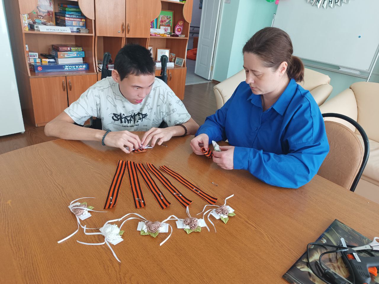 В преддверии знаменательной даты "80 - летие Победы в Великой Отечественной войне " воспитанники отделения для детей с особенностями развития изготовили георгиевские ленточки. Георгиевская лента - один из главных символов Дня Победы. Значение Георгиевской ленты заключается в том, что это знак соответствующего ордена, который присваивался исключительно за боевые заслуги. Георгиевская лента стала символом верности долгу и храбрости военных.