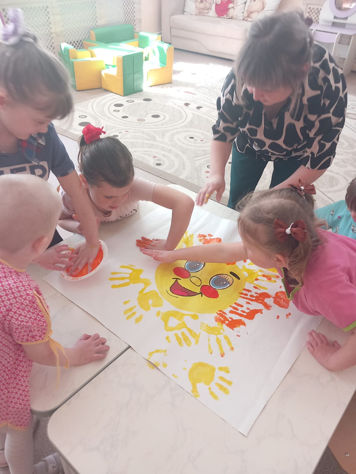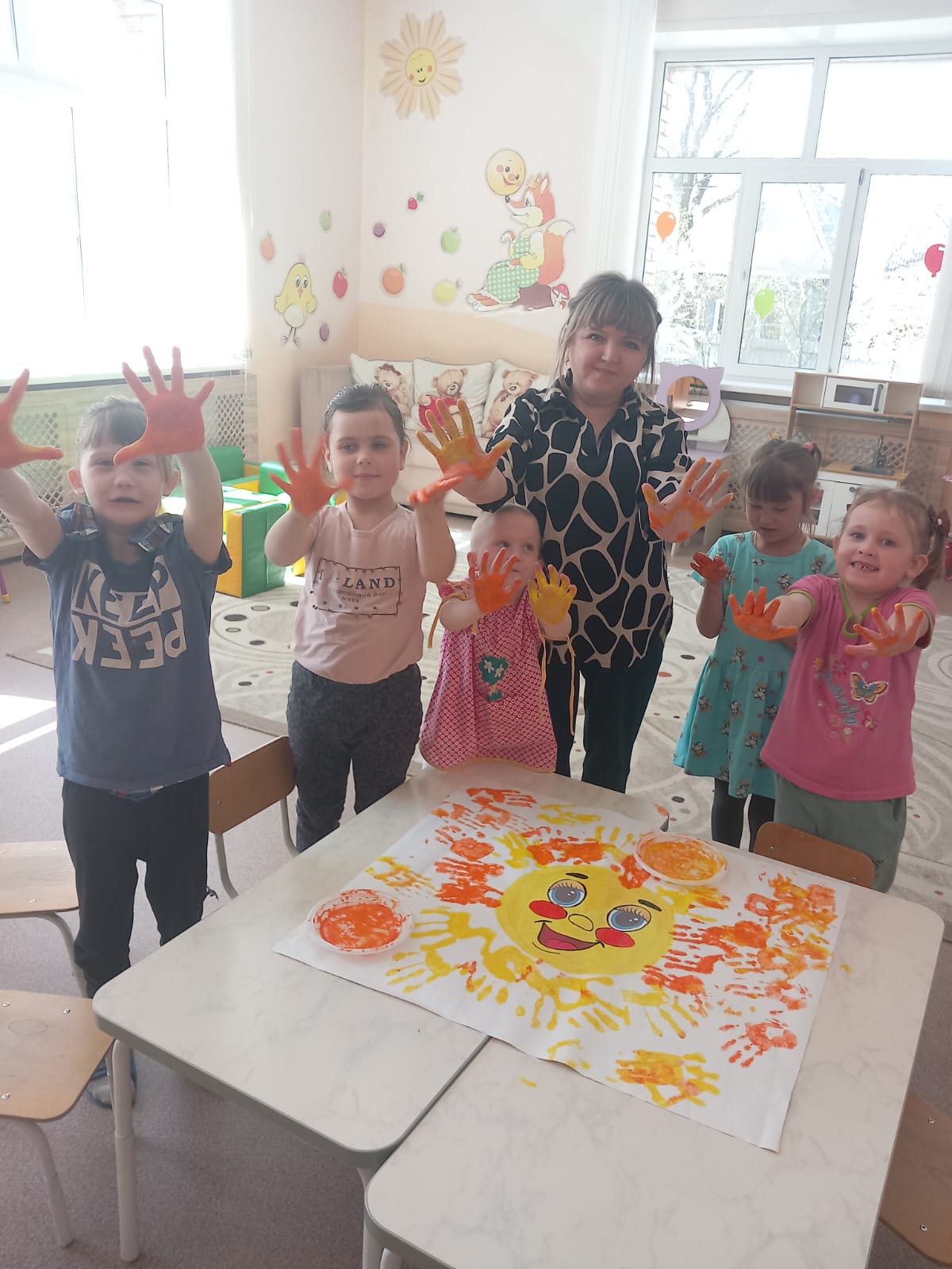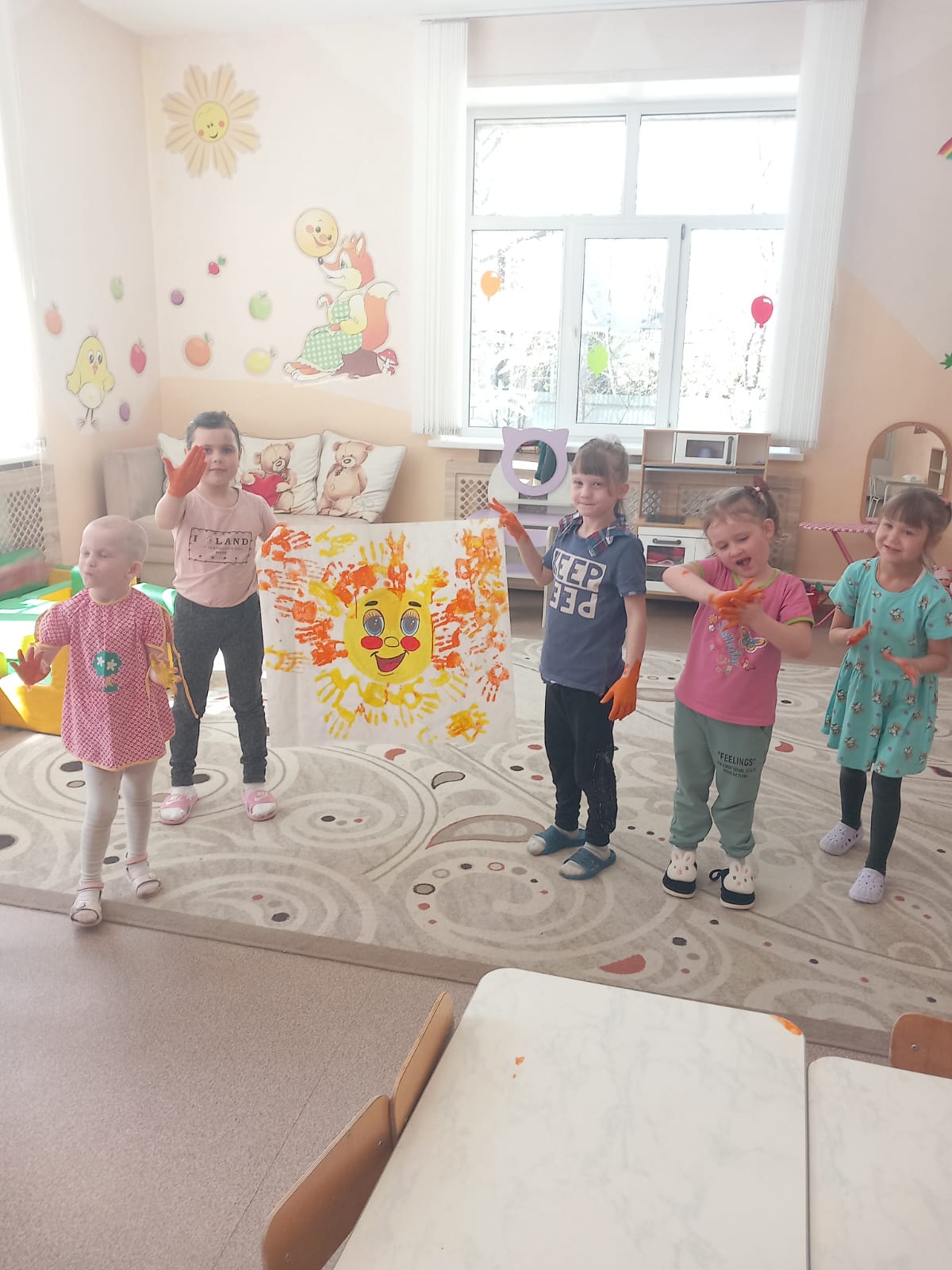 Рисование ладошками для детей - не просто увлекательное времяпровождение, но и полезное для мелкой моторики и для психоэмоционального состояния упражнение. Дошкольникам удобнее заниматься изобразительным творчеством не кистями и карандашами, а собственными руками и пальчиками. При нетрадиционном способе рисования ключевым моментом становится не столько результат работы, сколько личностное развитие, формирование творческих навыков. Этот нетрадиционный способ изобразительного творчества формирует у дошкольника представление о свободе художественного самовыражения, о характеристиках материалов, используемых для рисования. Тактильный контакт с краской и бумагой вызывает у ребенка восторг и любопытство. Ребенок начинает осознавать, что с помощью отпечатков собственных ладоней можно создавать оригинальные изображения. Через нетрадиционное рисование ребенок осваивает и другие техники изобразительного творчества, которые в данном случае использует как вспомогательные. Ребята стационарного отделения выполнили коллективную работу «Солнышко лучистое». Где получили море положительных эмоций. Пусть дети рисуют, творят, фантазируют! Не каждый из них станет художником, но рисование доставляет им удовольствие, они познают радость творчества, учатся видеть прекрасное в - обычном. Пусть они растут с душой художника!