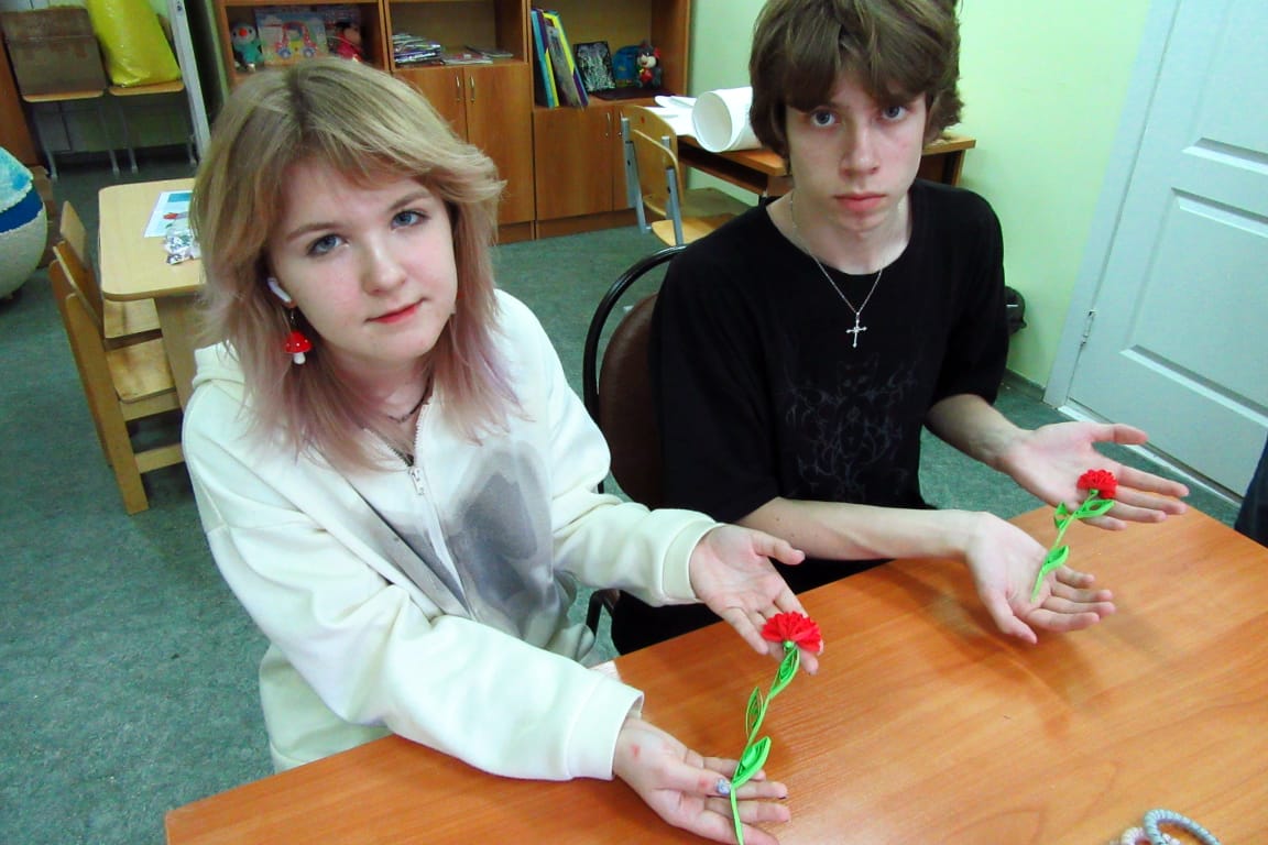В художественной мастерской с детьми стационарного отделения прошёл мастер-класс "Гвоздика ко Дню Победы". Этот цветок является символом Победы, мужества и стойкости. Мы с ребятами решили сделать её в технике квиллинг. Это искусство бумагокручения, развивающее усидчивость, терпение, моторику рук и эстетический вкус.