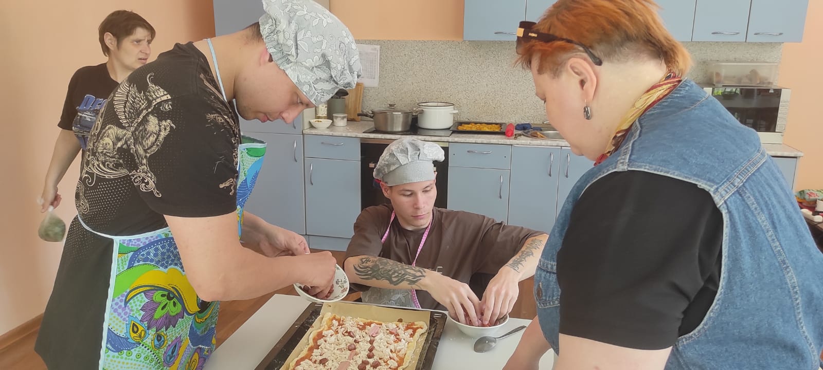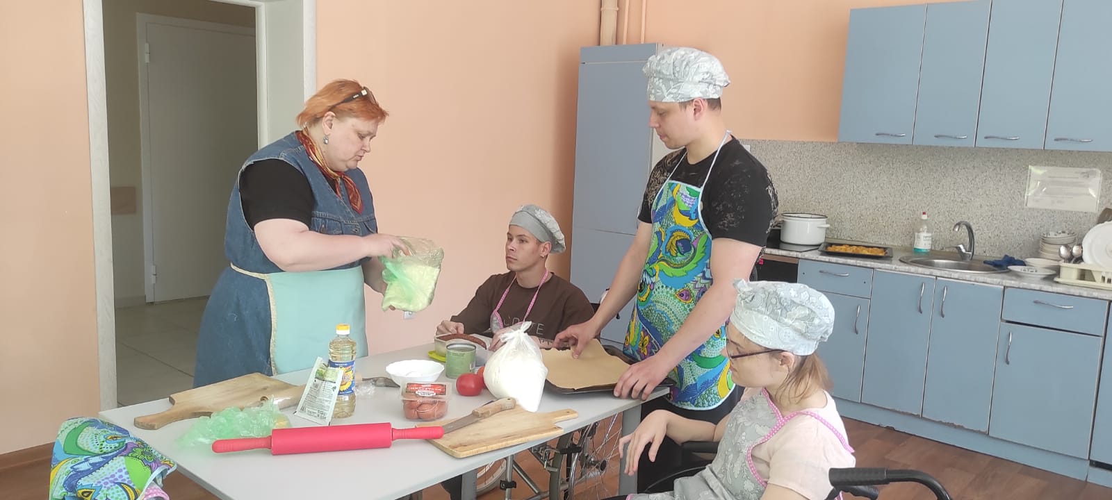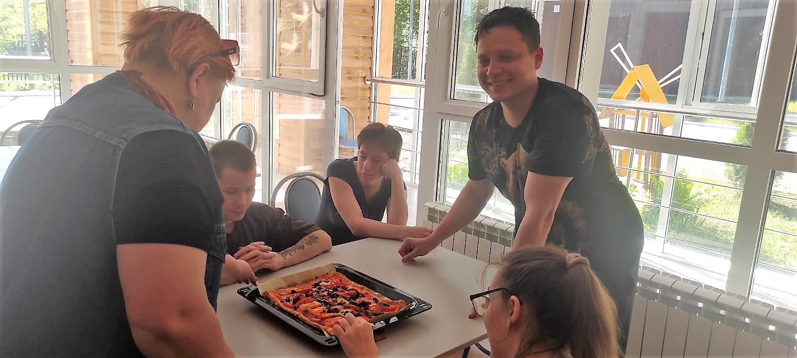 С каждым днем становится все солнечнее и теплее, с самого утра у всех хорошее настроение, а чтобы день стал еще лучше, необходимо себя побаловать. Вспомнив недавнюю пробу сил в приготовлении пиццы, ребята из отделения сопровождаемого проживания решили приготовить ее сами. Все ингредиенты подготовлены, рецепт выбран, на кухне становится жарко! Ребята с большим энтузиазмом принялись за приготовление настоящей и самой вкусной домашней пиццы. Как только все было готово, ребята оценили результат своего труда за чашкой чая и оживленной беседой. Обязательно побалуйте себя сегодня!