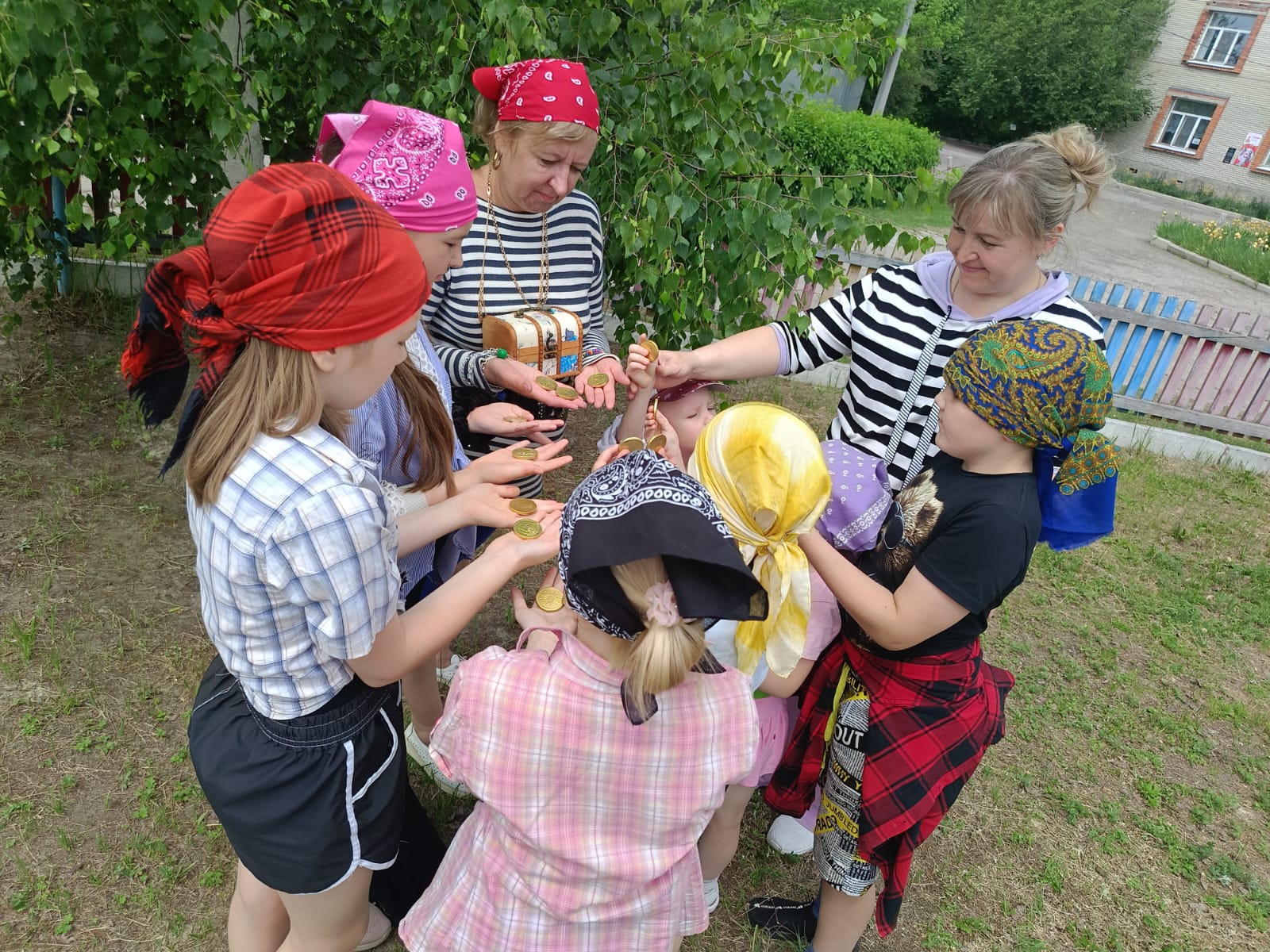 В праздник Дня защиты детей ребята отправились в путешествие, где участвовали в квест-игре «Поиски пиратского клада». Воспитанникам Кузнецкого филиала была предложена музыкальная разминка, после которой пират Джек и матросы отправились на поиски затонувших сокровищ. Чтобы добраться до клада, участникам игры необходимо было преодолеть препятствия: добраться до берега безлюдного острова, построить корабль, пройти через болото, найти волшебное дерево, состязаться с акулами и, наконец, отыскать заветный сундук с сокровищами. Ребята двигались по намеченному маршруту, проявив ловкость, выносливость и сообразительность. А пройдя задания, получали подсказки и кусочек затерянной карты. Игра прошла в тёплой, дружеской атмосфере и закончилась чаепитием на природе. Все участники получили отличный заряд бодрости и море положительных эмоций!
