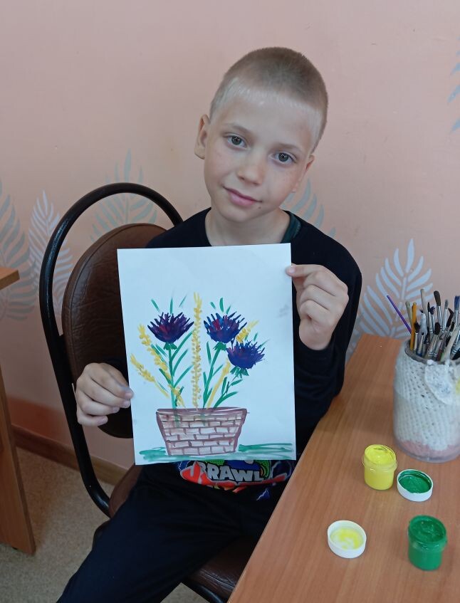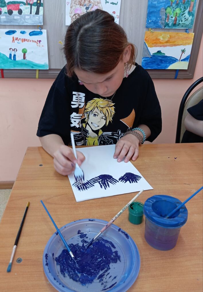 Воспитанники отделения социального приюта приглашают вас на мастер-класс по нетрадиционной технике рисования вилками летних цветов. Одноразовые пластиковые вилки – тот инструмент, который может создать для вас интересный рисунок нетрадиционным методом. Все рисунки, где нужен характерный лохматый мазок, станет просто и быстро рисовать даже маленькому ребёнку. Для работы вам понадобятся: - вилка одноразовая, альбомный лист, гуашь, кисточка, ёмкость для воды, ёмкость для разведения гуаши и салфетки. В отдельной ёмкости разведите гуашь. Чтобы расход краски был меньше, её можно разводить с клеем ПВА – один к одному. Вилкой зачерпываем густую краску и накладываем отпечатки, создавая рисунок. Чтобы рисунок был выразительнее и интереснее, до рисуйте зелёной гуашью стебли и листья и дополните другими элементами. Посмотрите, какие красивые у нас васильки. Присоединяйтесь к нам. Желаем вам творческих успехов!