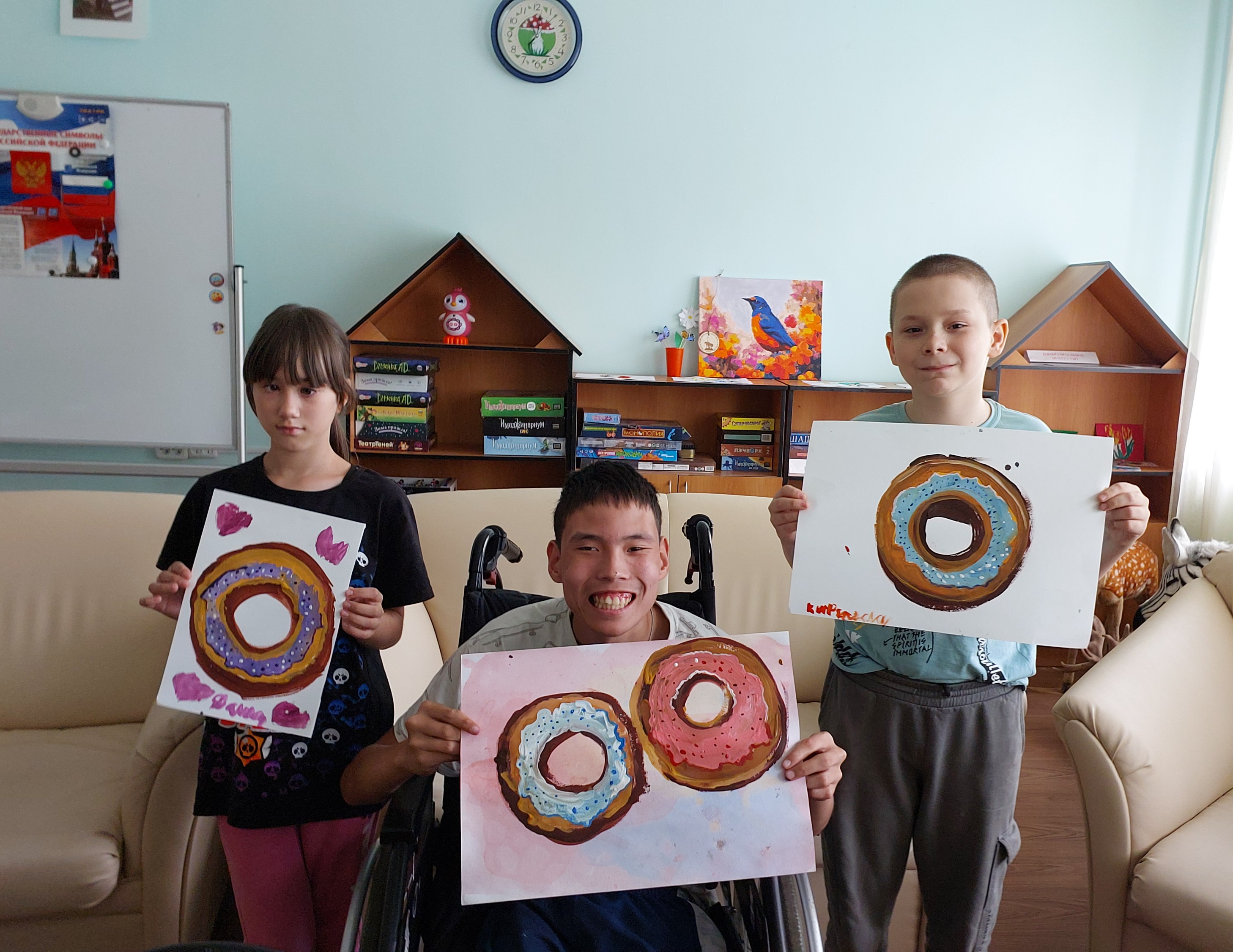 Привет, друзья! Лето — это не только пора отпусков и солнечных дней, но и великолепное время для творчества и самовыражения! В отделении для детей с особенностями развития мы решили использовать это время по максимуму и сегодня хотим поделиться с вами последним творением — пончики с глазурью! Наши ребята использовали яркие цвета и креативные идеи, чтобы создать сладости, которые радуют глаз и поднимают настроение. Так что давайте поддержим наших юных художников! Напишите в комментариях, какой из пончиков вам понравился больше всего, и представьте, как было бы здорово попробовать их на вкус!