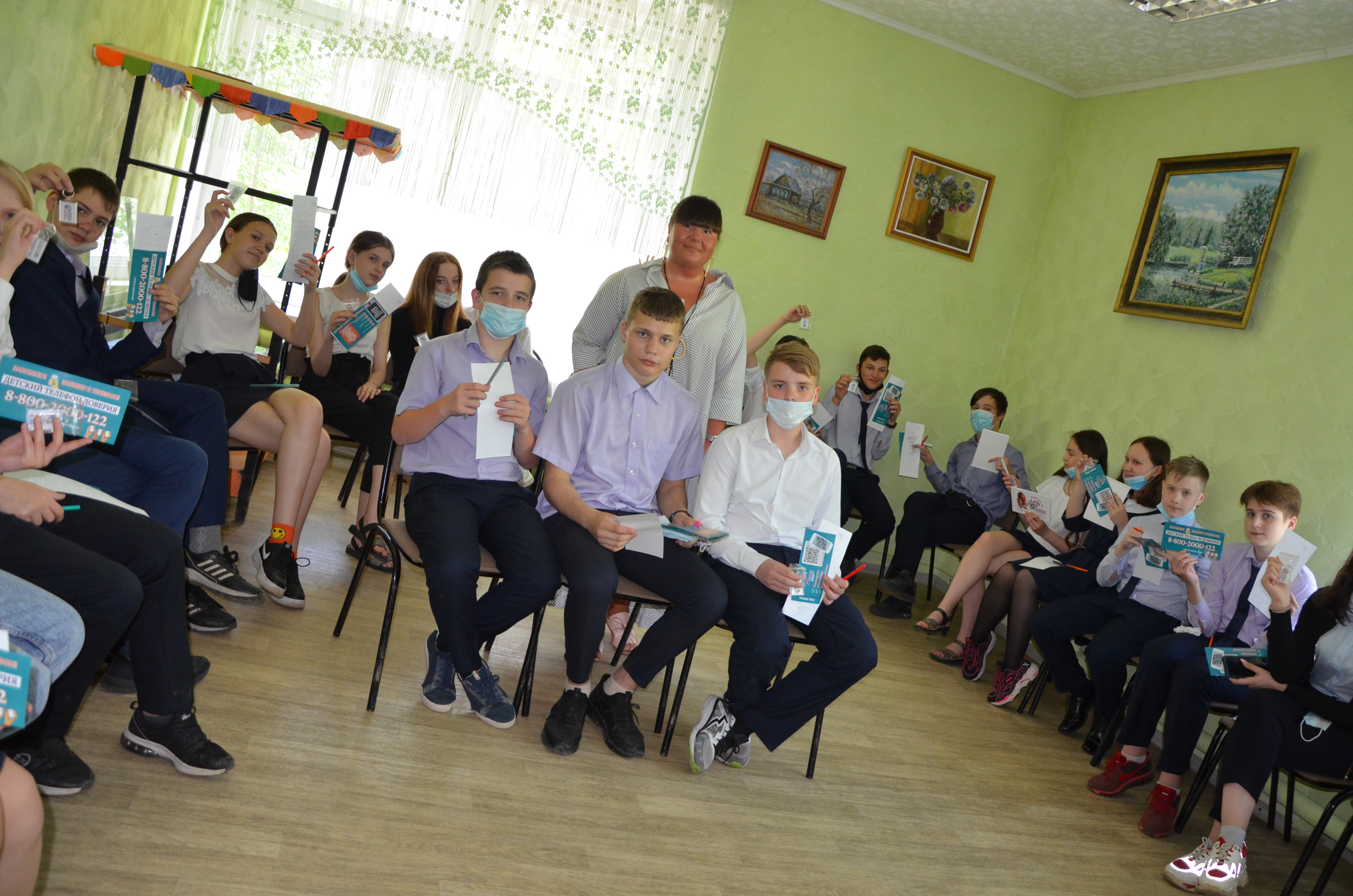 В завершении учебного года специалист центра Кружкова Ж.С. провела занятие на тему "Доверять – ПРОСТО – попробуй!". Цель данной встречи – напомнить детям номер детского телефона доверия, а также повышение уровня доверия детей и подростков к услуге экстренной психологической помощи, мотивирование детей на обращение за психологической помощью и поддержкой детского телефона доверия. Мероприятие прошло в ГКУК "Пензенская областная библиотека для детей и юношества". Встреча с учениками 7 класса началась с разминочного упражнения «Ассоциации». После того как все включились в занятие, проведено упражнение "Да, Нет, Не знаю", в котором участникам озвучивались различные факты о детском телефоне доверия и нужно было выбрать ответ. Это упражнение позволило узнать об отношении детей к детскому телефону доверия, уровне владения информацией, об актуальности и значимости данной темы. Затем была проведена игра "Слепой и поводырь", направленная на получение безопасного опыта проявления доверия, переосмысление своего отношения к доверию, повышения уровня доверия к другим. В конце мероприятия, учащимся были показаны видеоролики, с целью актуализации трудных жизненных ситуаций, с которыми, возможно, сталкивались или могут столкнуться участники, через знакомство и осмысление историй других людей. В завершении мероприятия проведено обсуждение на тему важности получения экстренной психологической помощи и всем участникам вручены сувениры в виде плакатов, ручек, блокнотов, брелоков для ключей, буклетов с логотипами и номером Общероссийского детского телефона доверия 8 800 2000 122.