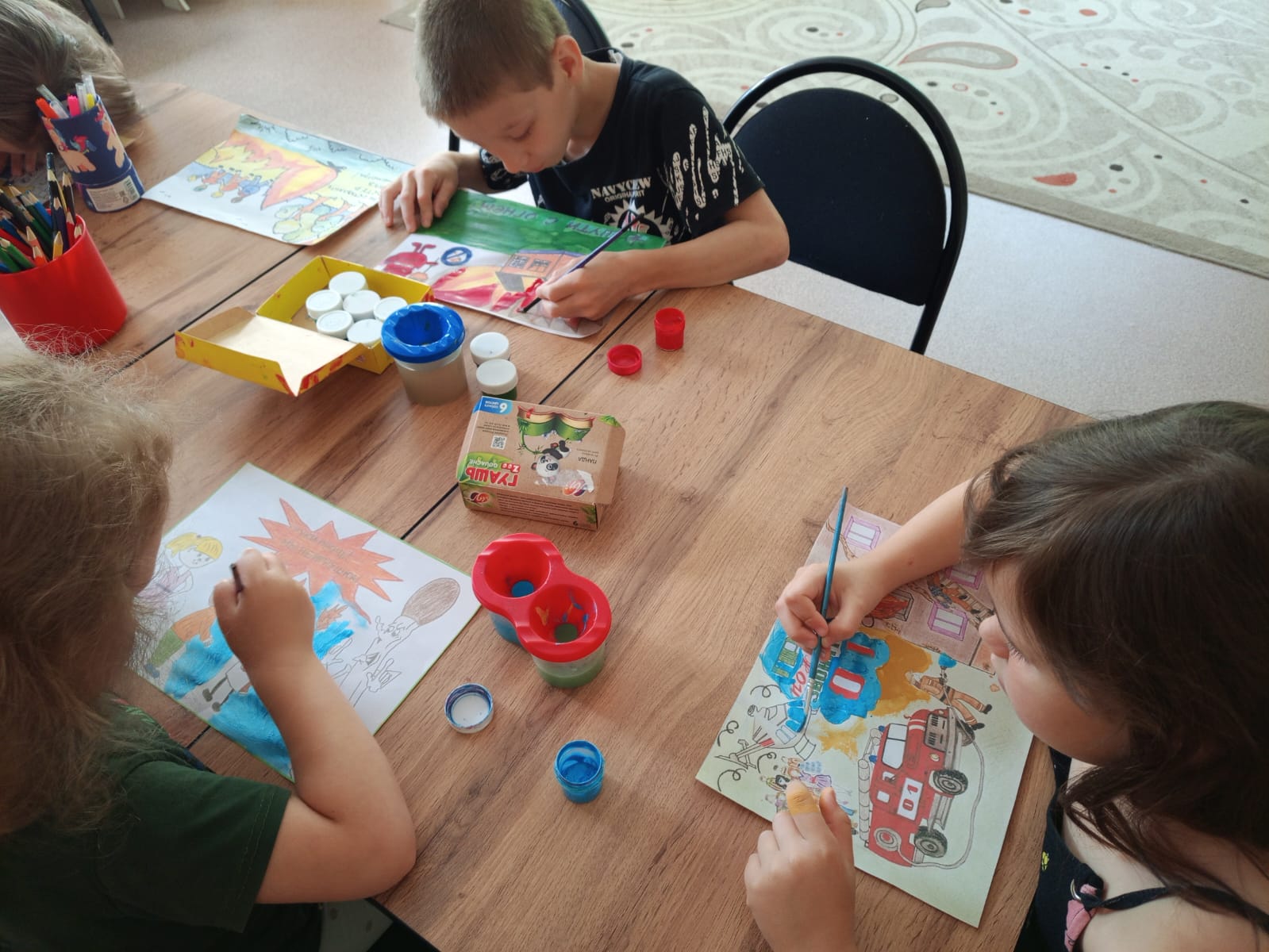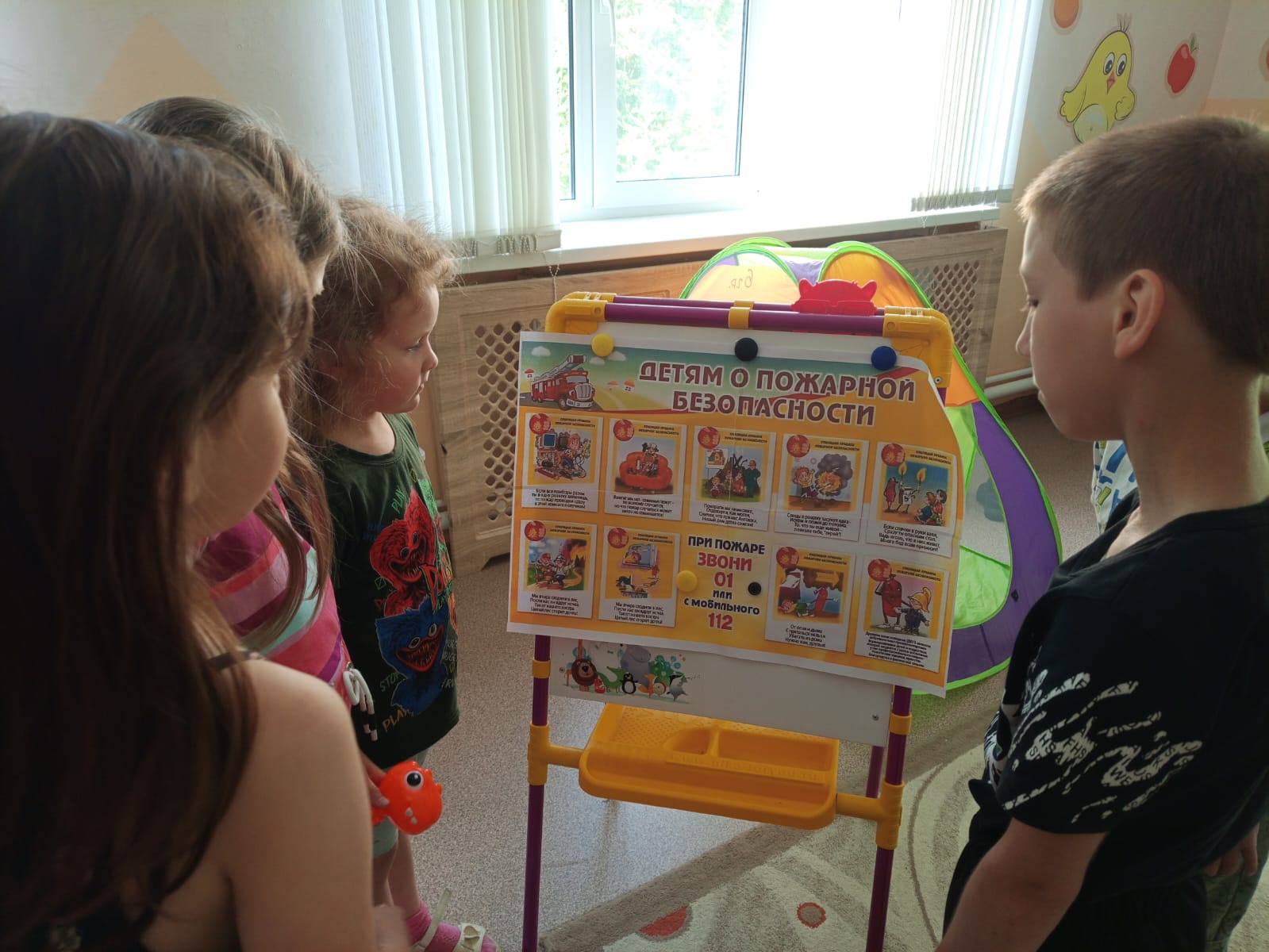 В "День предотвращения пожаров" ребята обсуждали причины возникновения пожаров, средства тушения и действия при возникновении возгорания. С целью профилактики пожаров и воспитания культуры безопасности жизнедеятельности они знакомились с правилами пожарной безопасности, рассматривали иллюстрации с изображением бедствий, которые могут возникнуть из-за игр со спичками и другими легковоспламеняющимися предметами, познакомились с пожарным щитом, узнали, для чего в нём находятся шланг и огнетушитель, узнали, зачем нужна пожарная кнопка в группе, и ещё раз обратили внимание на запасной выход. Вспомнили номера телефонов вызова экстренных служб. И, конечно же, побывали в роли пожарных! День прошёл очень познавательно и интересно.