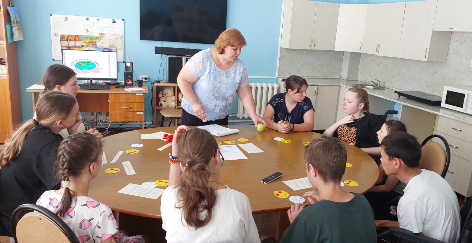 В отделении для детей с особенностями развития прошёл открытый урок на тему: "Путешествие в страну доброты". В ходе мероприятия ребята отправились в увлекательное путешествие, перемещаясь по различным станциям, каждая из которых была посвящена доброте и дружбе. На станциях они отвечали на вопросы, выполняли творческие задания и участвовали в игре на внимание. Дети с радостью обсуждали, что такое доброта, и делились примерами добрых поступков из своей жизни. Занятие прошло в дружеской атмосфере. Ребята активно взаимодействовали друг с другом и делились позитивными эмоциями!