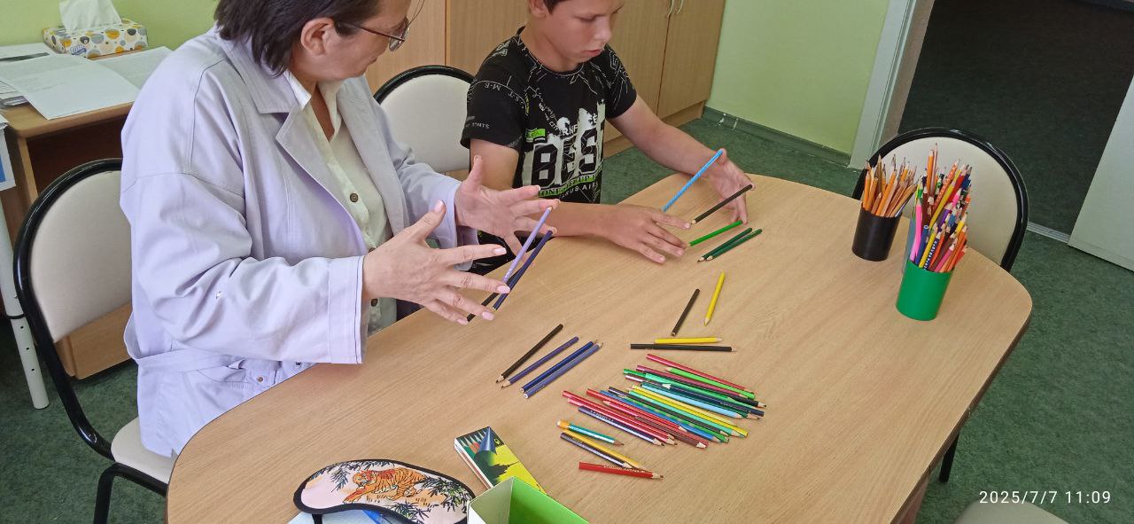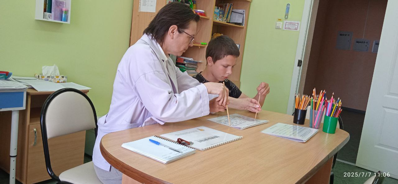 Лето ассоциируется с теплом, солнцем и долгожданным отдыхом. Но даже летом мозг ребенка нуждается в тренировке! Для поддержания когнитивных функций педагог-психолог Блощененко С.В. провела занятие для развития познавательных навыков. Ребёнку были предложены увлекательные упражнения, которые помогают укрепить память, внимание и мышление: это занимательная нейрогимнастика и работа с таблицами Шульте. Нейрогимнастика — комплекс упражнений, направленных на активизацию различных зон головного мозга. Она помогает развивать координацию движений, концентрацию внимания и улучшает общее состояние нервной системы. Таблицы Шульте — развиваем внимательность и скорость реакции! Регулярные тренировки позволяют развить периферическое зрение, улучшают способность концентрироваться и повышают общую эффективность восприятия информации. Педагоги-психологи советуют чередовать физическую активность с умственными нагрузками, создавая сбалансированный режим летних каникул. Пусть летние дни будут наполнены радостью познания и яркими впечатлениями!