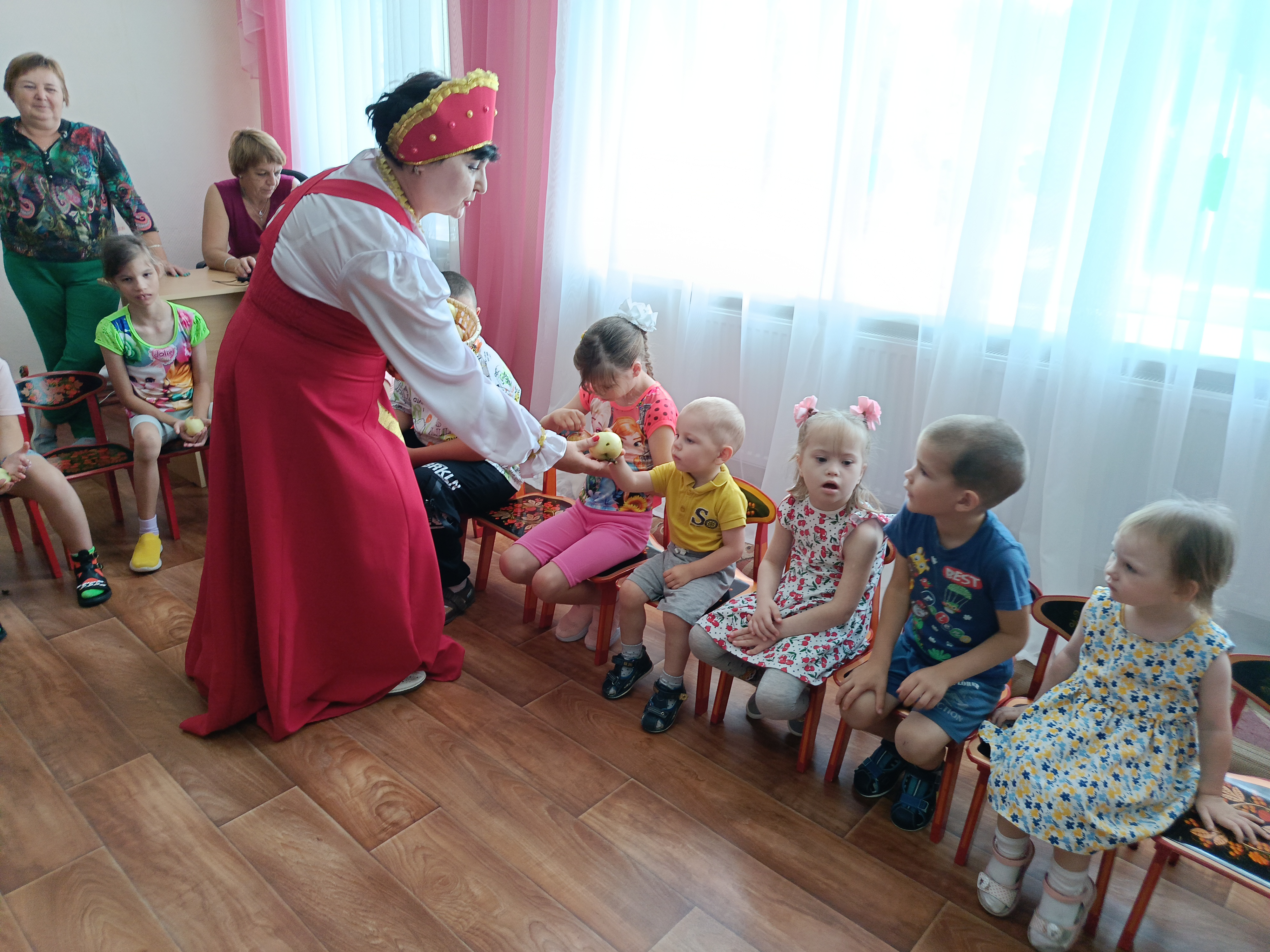 Сегодня, 19 августа в народном календаре отмечается праздник "Яблочный Спас". Это событие не осталось без внимания и в нашем учреждении. С целью формирования духовного мира детей через знакомство с народными праздниками и традициями в Кузнецком филиале провели мероприятие познавательно - развлекательного характера "Яблочный Спас". Ребята узнали, что этот праздник символизирует начало сбора урожая и окончание лета, познакомились с историей праздника. Гостьей праздника стала Хозяюшка. С ней ребята поиграли в веселые народные игры и танцы. Праздник прошёл очень весело и задорно. В завершении Хозяюшка угостила ребят новым урожаем сладких, наливных ябло. Праздник удался на славу!