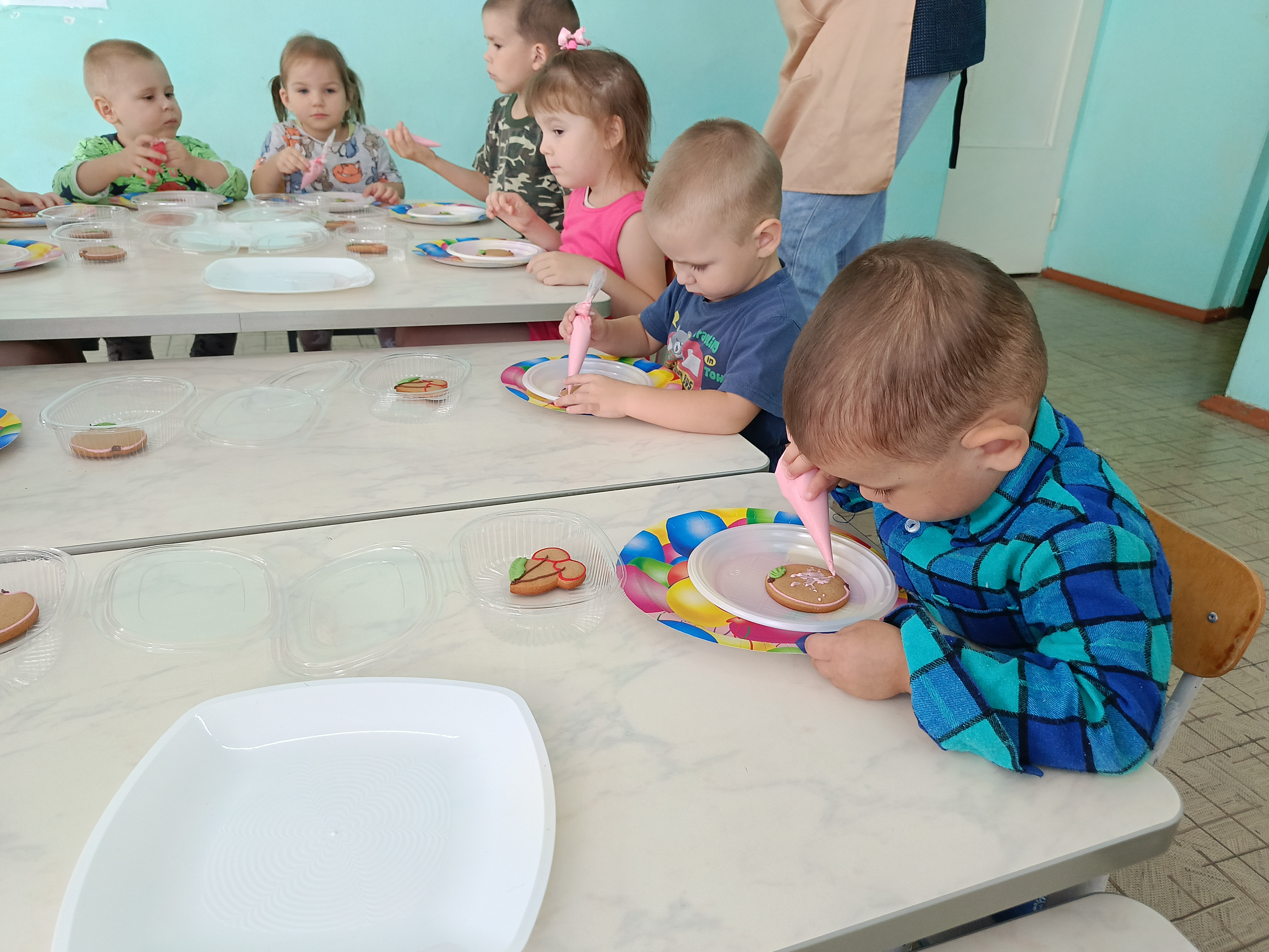 В Кузнецком филиале ребята провели незабываемое время. Из Кузнецкой епархии сестры милосердия Наталья Алексеевна и Ольга Алексеевна показали мастер-класс по расписыванию имбирного пряника, а затем малыши освоили искусство украшения пряников, создавая свои маленькие кулинарные шедевры. В группе царила творческая атмосфера. Маленькие ручки творили чудеса! Дети старательно украшали свои шедевры и, не давая подсохнуть вкусной сладкой глазури, съели свои пряники. Большое спасибо сестрам милосердия за проведённый мастер-класс с малышами.