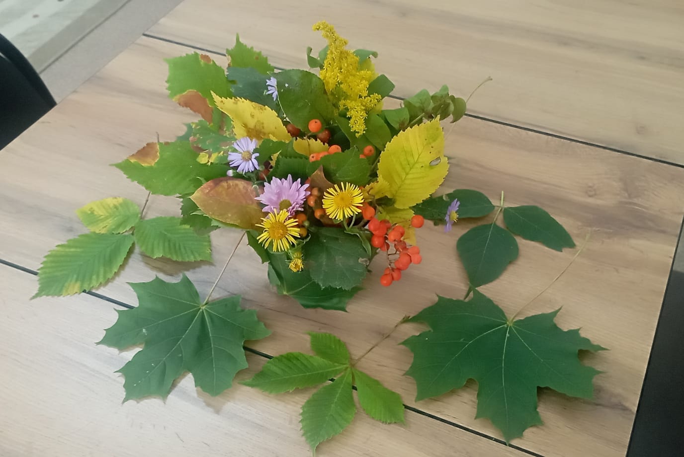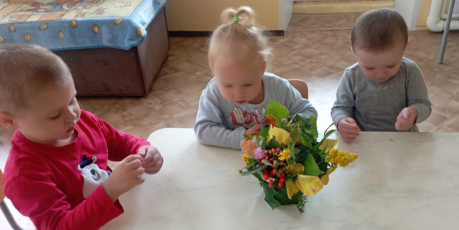 В группе раннего возраста в отделении детей с особенностями развития прошло интересное занятие по изготовлению осеннего букета. Воспитатель Серова Ирина Игоревна провела с детьми беседу о наступившем времени года, рассматривание осенних листьев с разных деревьев и кустарников. Ребята даже станцевали танец с листочками, а затем совместно с воспитателем приступили к изготовлению настоящего осеннего букета. Собирали букетик из разных листьев, веточек, ягод рябины и цветов. Букет получился очень красочный и по-осеннему красивый!